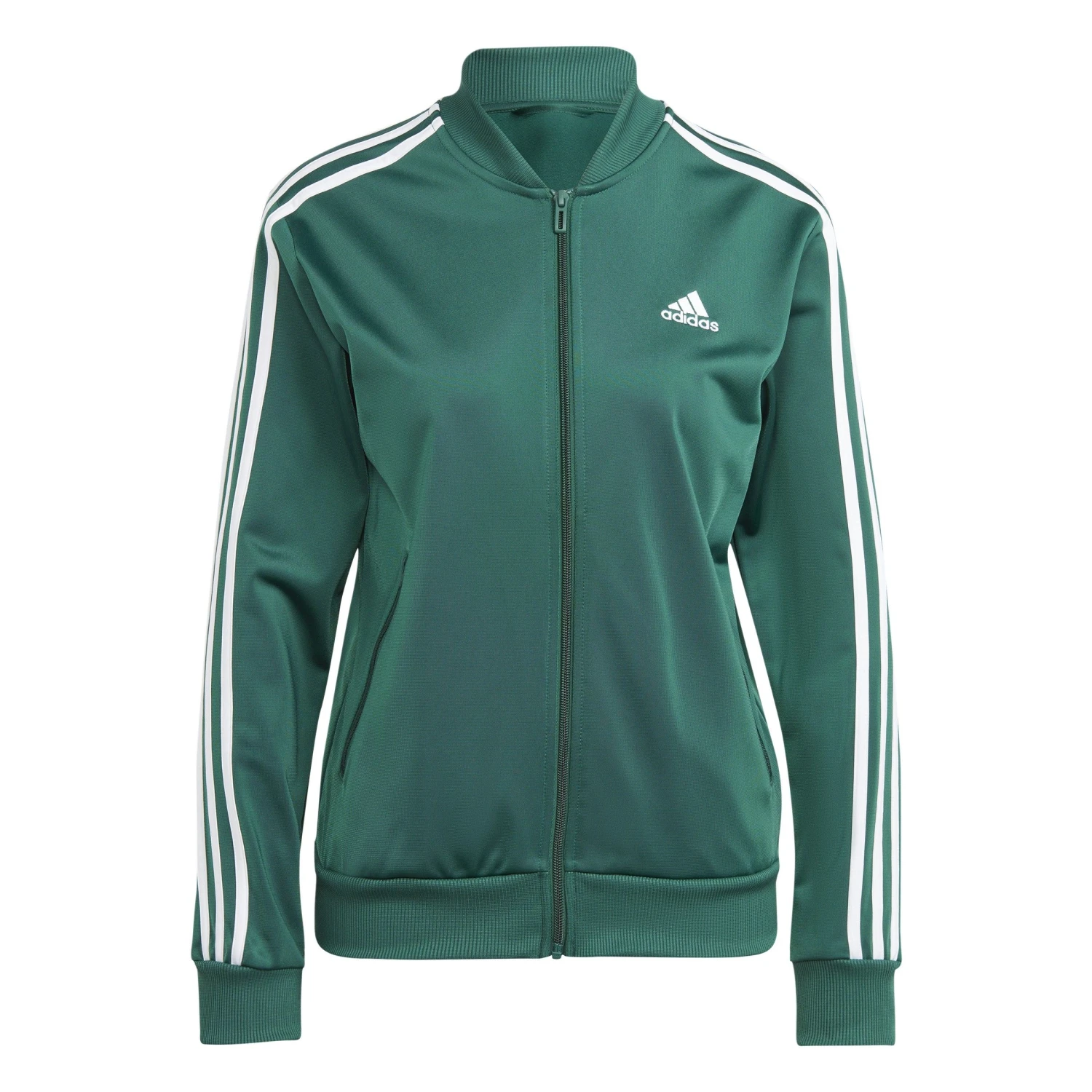 Het adidas Essentials 3-Stripes trainingspak voor dames is perfect om relaxed een zaterdagavond of dagje thuis door te komen. Het trainingspak voelt zacht en heeft een strakke pasvorm. De broek heeft een elastische tailleband en de broekspijpen hebben een omgezoomde band.