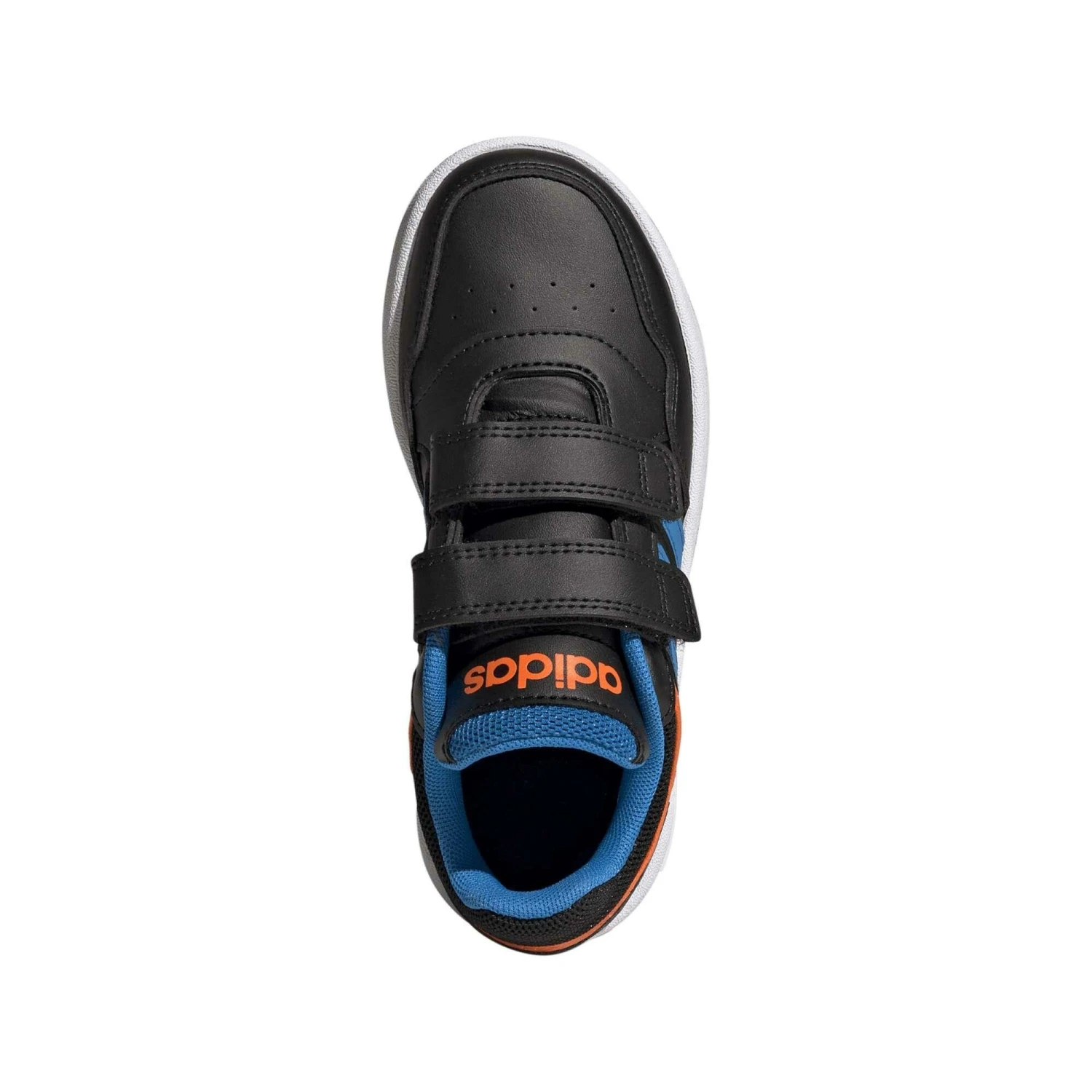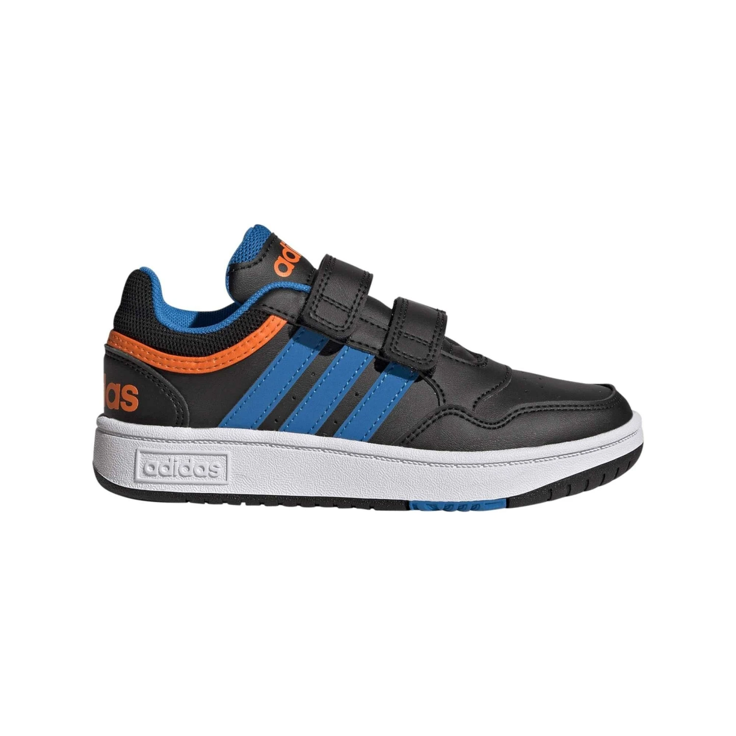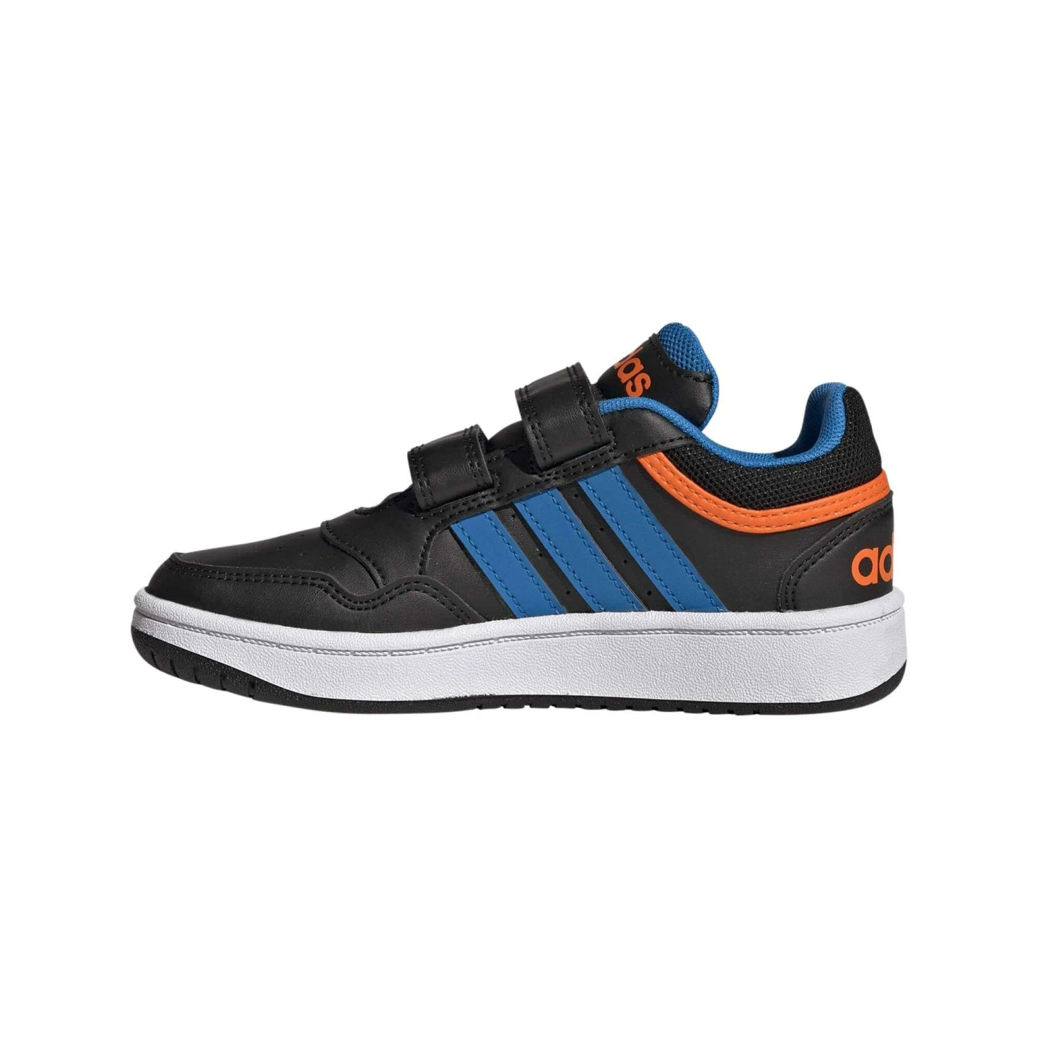De adidas Hoops 3.0 GZ1939 vrijetijdsschoenen junior hebben een normale pasvorm met klittenbandsluiting. De tussenzool zorgt voor demping. De sneakers geven de ondersteuning en stabiliteit van een basketbalschoen.