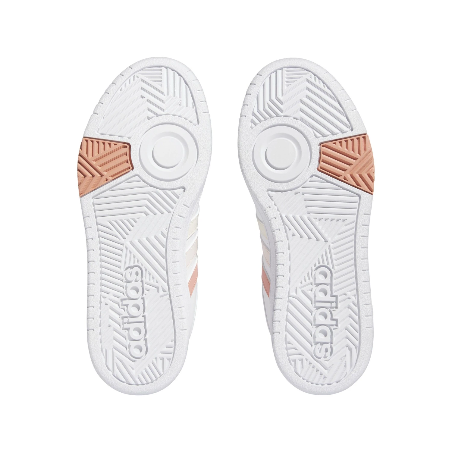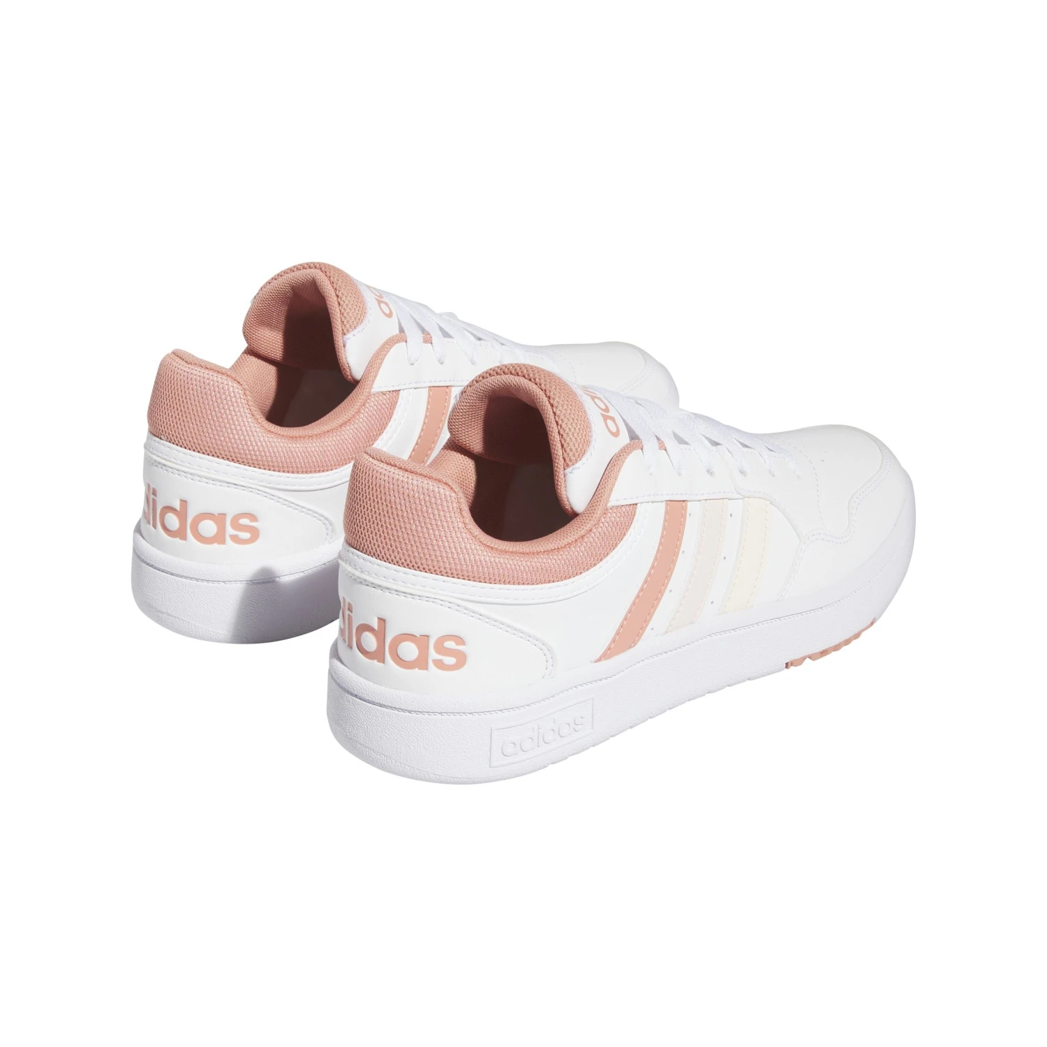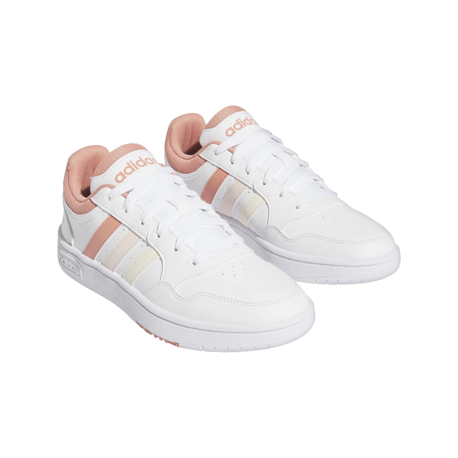 De adidas Hoops 3.0 vrijetijdsschoenen voor dames hebben het bekende 3 strepen design van adidas. Hierdoor hebben de schoenen een strakke casual look die onder elke outfit past. De schoenen zijn gemaakt van 50% gerecycled materiaal.