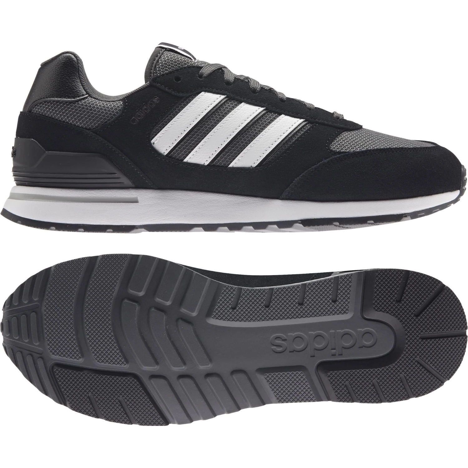 De adidas Run 80s vrijetijdsschoenen voor heren in de kleur core black zijn gemaakt van gerecyclede materialen. Deze adidas schoenen hebben een hielclip van TPU en dempende middenzool.