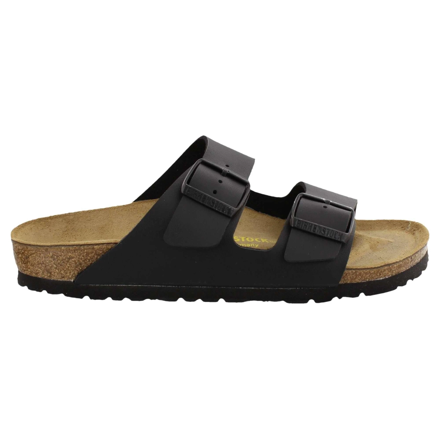 De Birkenstock Arizona slippers voor heren zijn klassiekers die al jarenlang populair zijn. Deze eenvoudige zwarte Birkenstock slippers hebben twee banden die over de wreef van de voet lopen. Dit bovenwerk is gemaakt van Birko-Flor, een ademend en huidvriendelijk PVC-kunststof. Het voetbed van deze slippers bestaat uit kurk met een suède dekzool, dit zorgt voor een zacht en prettig draagcomfort. Verder is de buitenzool voorzien van EVA, wat zorgt voor een goede demping en hoog loopcomfort. Deze Birkenstock slipper heeft een smalle pasvorm.