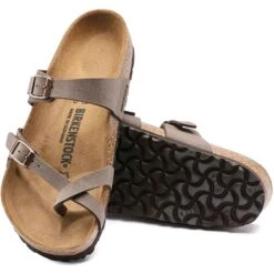 De Birkenstock teenslippers Mayari hebben een sierlijk vormgegeven design met teenlus. De combinatie van design en comfort ziet er elegant uit. Het bovenmateriaal bestaat uit het huidvriendelijke en slijtvaste synthetische materiaal Birko-Flor® en heeft een luxe nubucklook gekregen.