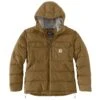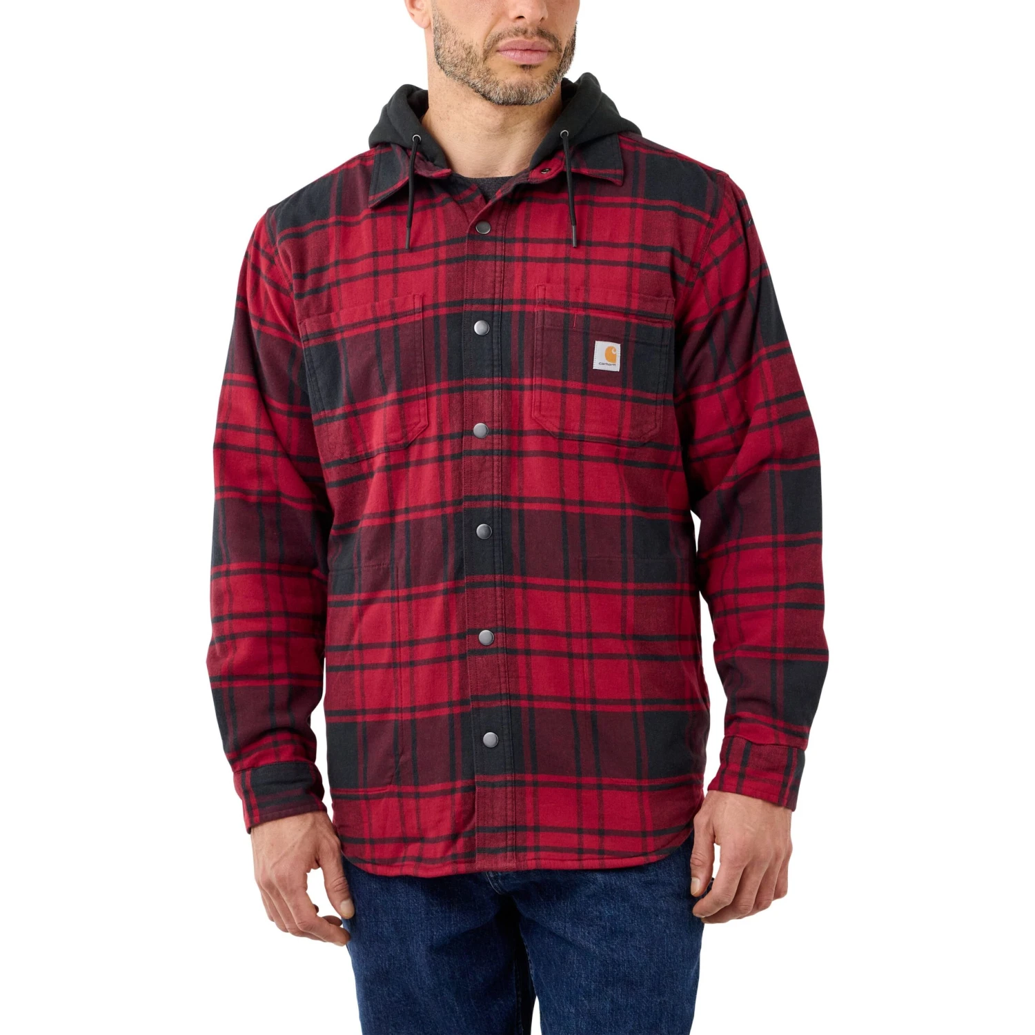 De Carhartt Flannel Fleece Lined Hooded jas voor heren met geïntegreerde flexibiliteit geeft u de bewegelijkheid die u nodig heeft bij uw buiten activiteiten. Deze jas van Carhartt is voorzien van een vaste capuchon en heeft een extra warme voering.