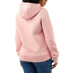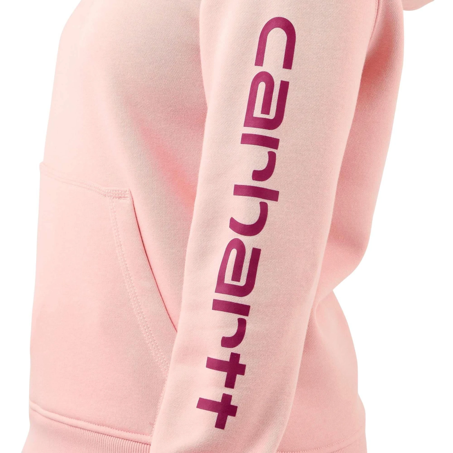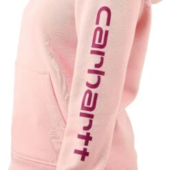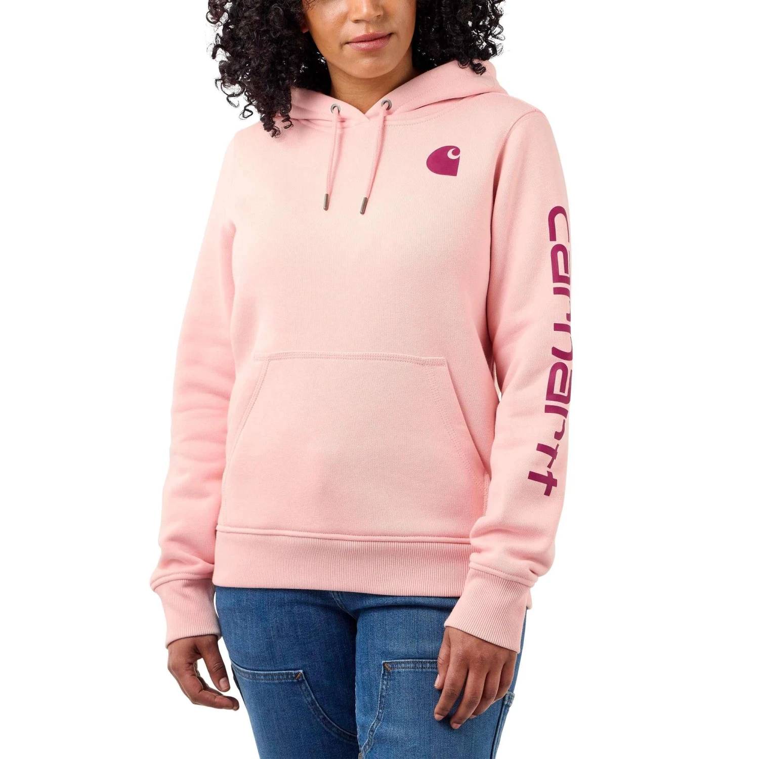 De Carhartt Logo Hoodie voor dames is een hele comfortabele trui met een driedelige capuchon en een grote zak voorop.