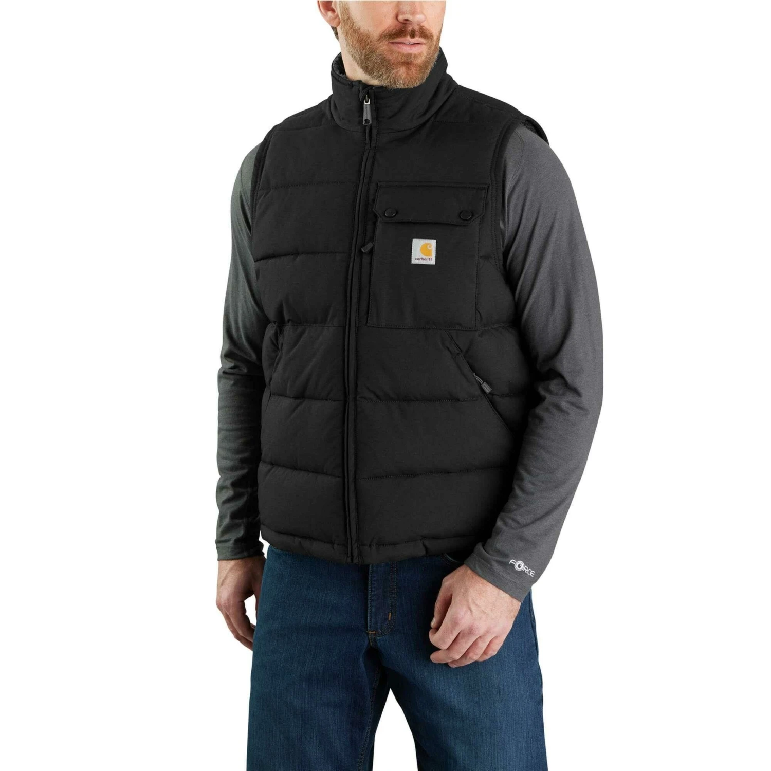 De Carhartt Montana bodywarmer is uitgevoerd met veel zakken met ritsen. De loose fit zorgt voor een comfortabele pasvorm.