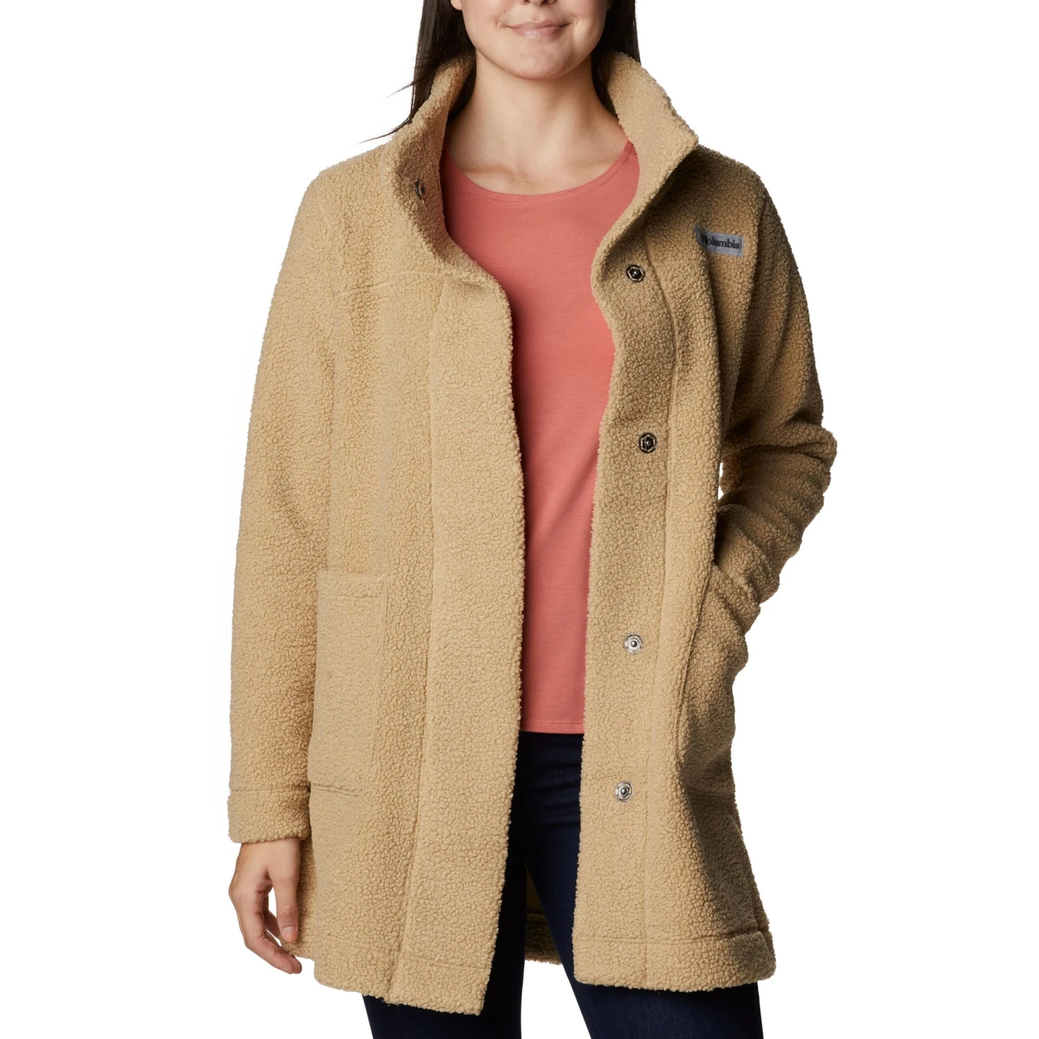 De Columbia Panorama winterjas houdt het lichaam warm dankzij de hoge kraag en het fleece materiaal. De jas heeft twee handige zakken.