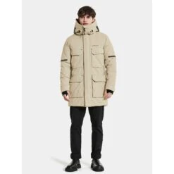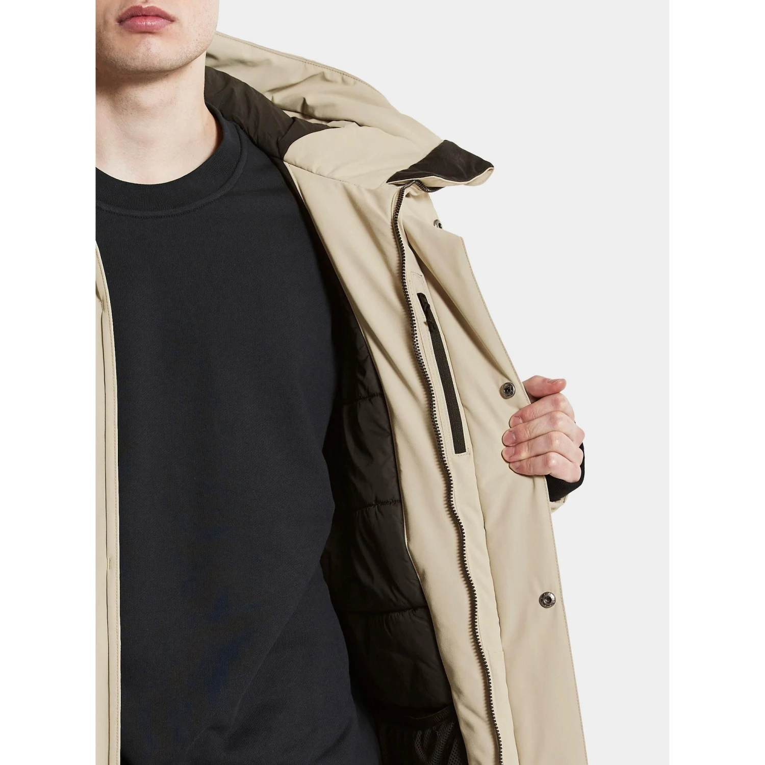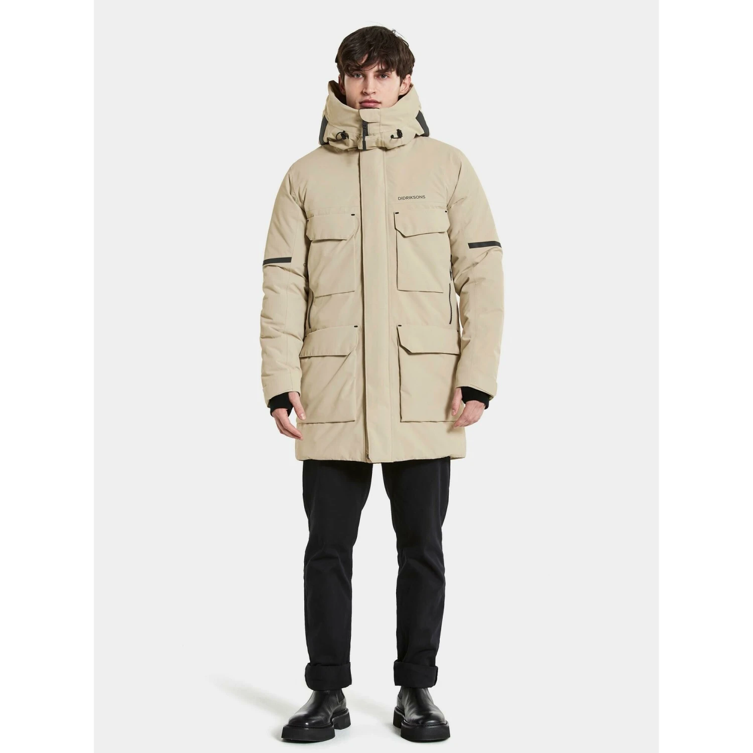 De Didriksons parka voor heren heeft zes zakken, waarvan twee met ritssluiting. De jas beschermt tegen regen en wind en heeft een stormflap. De capuchon is verstelbaar.