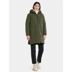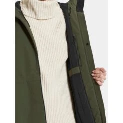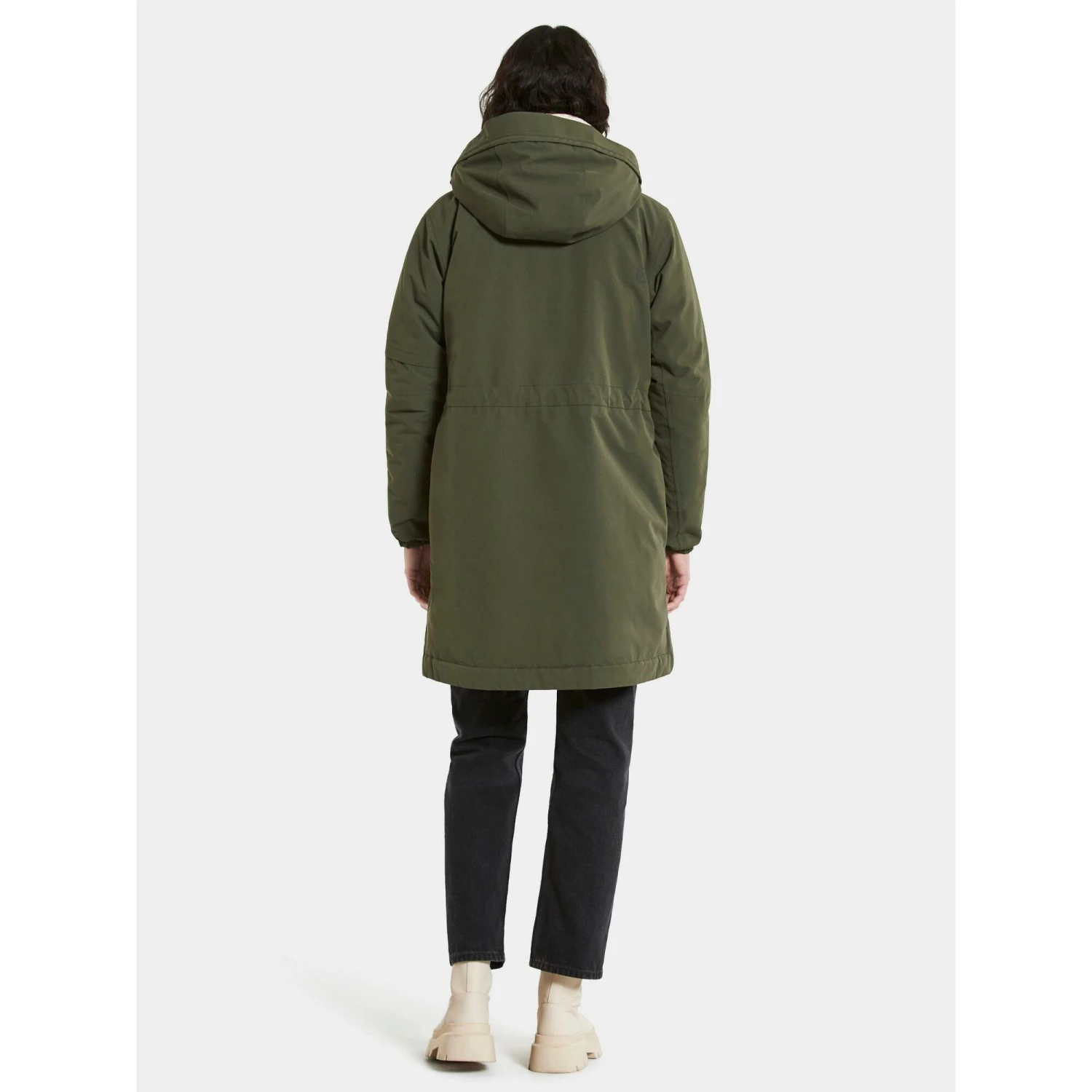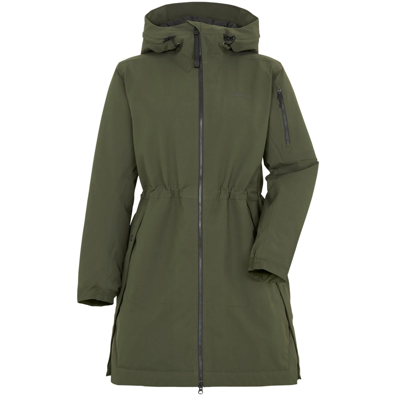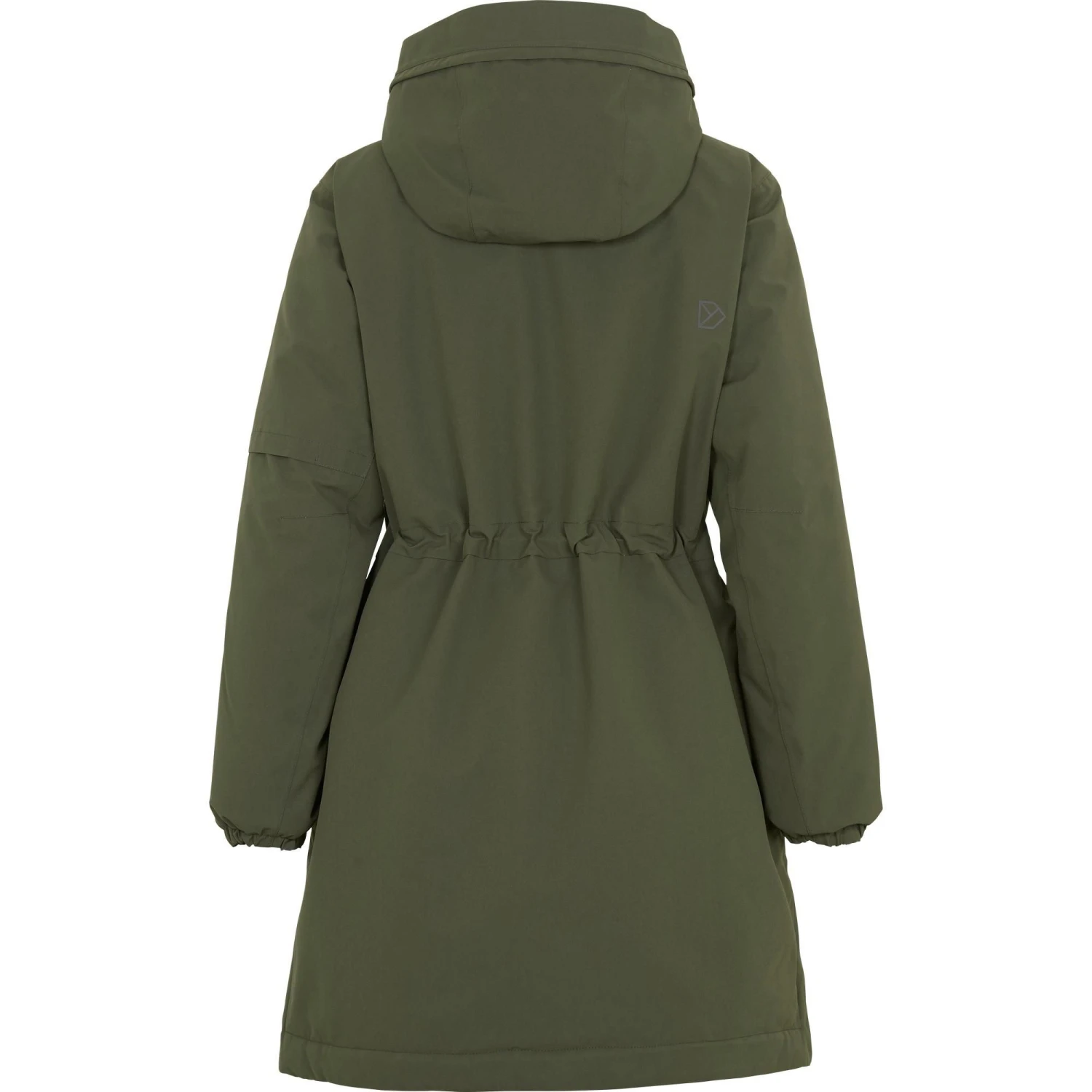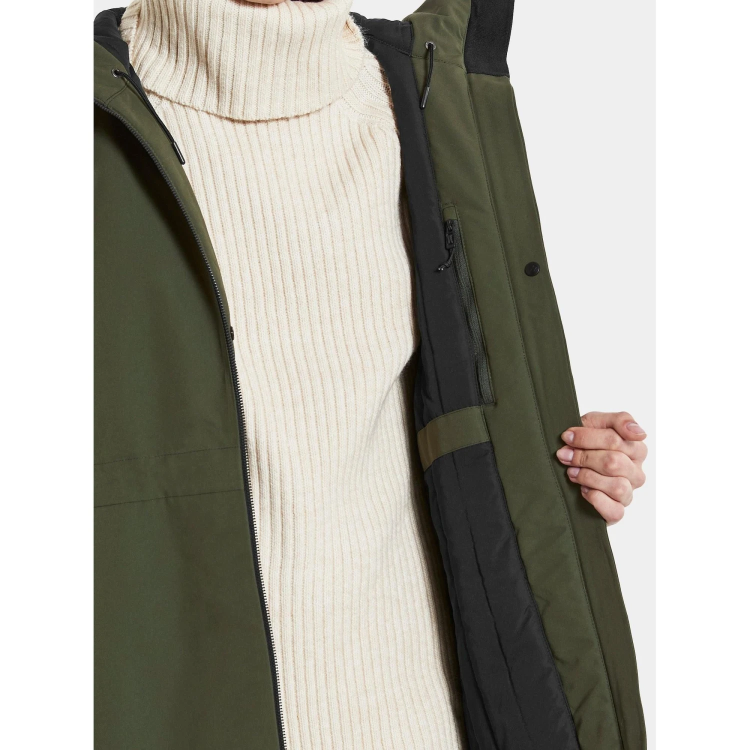 De Didriksons Ella parka heeft een handige binnenzak met ritssluiting. Het logo op de jas is reflecterend.