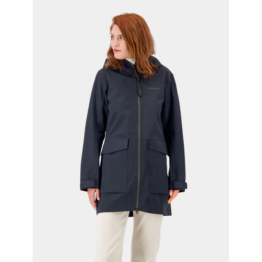 Deze Didriksons Fredrika parka komt in de kleur dark night blue. De parka heeft een slank silhouet wat dicht op het lichaam aansluit. De jas is gemaakt van waterafstotend materiaal wat het ideaal maakt voor de lente- en herfstperiode. De parka heeft in totaal twee royale voorvakken voor belangrijke spullen.