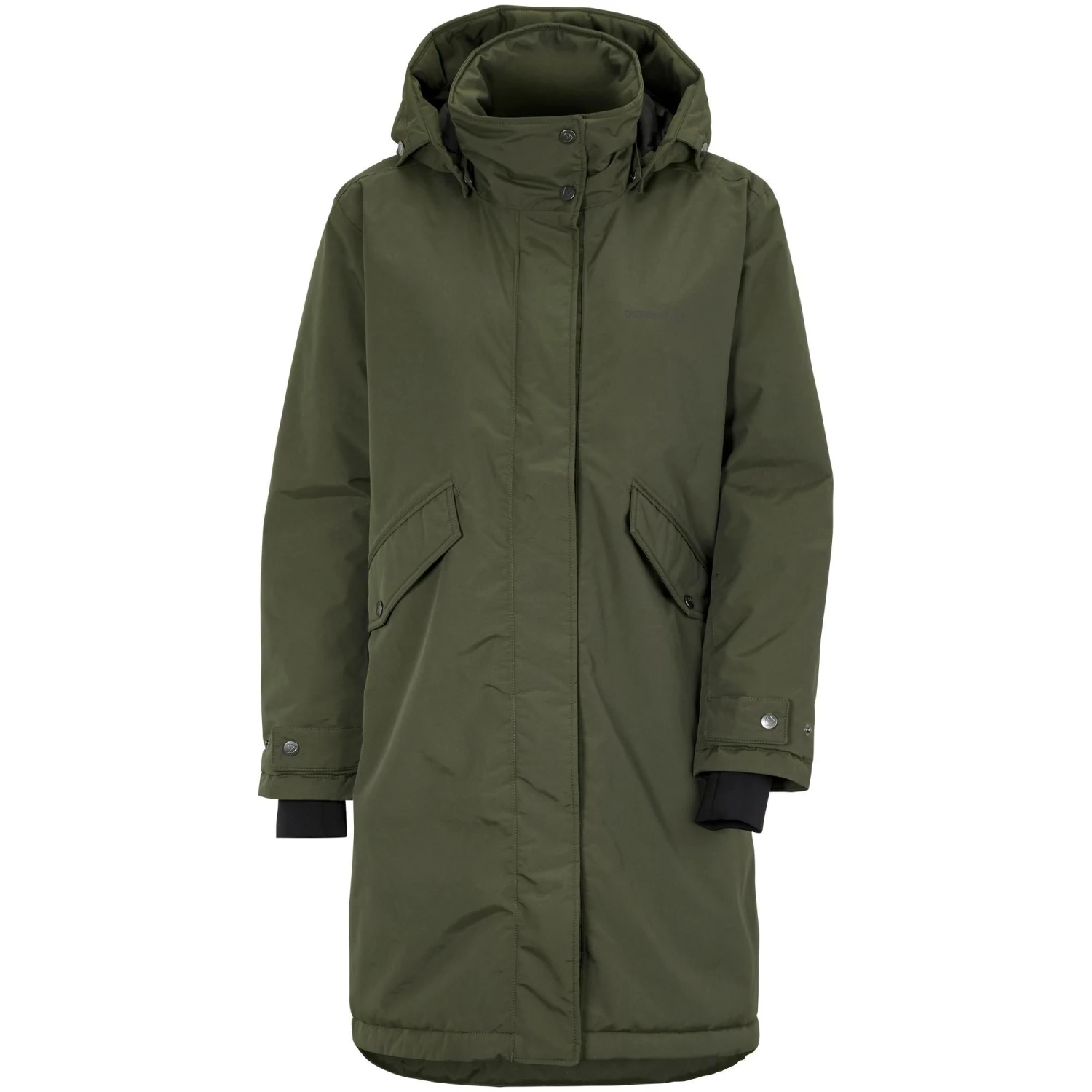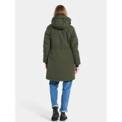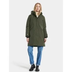 De Didriksons Josefine parka heeft een handige binnenzak met ritssluiting. De taille kan versteld worden met de trekkoordjes. Op de jas zitten kleine, reflecterende elementen.