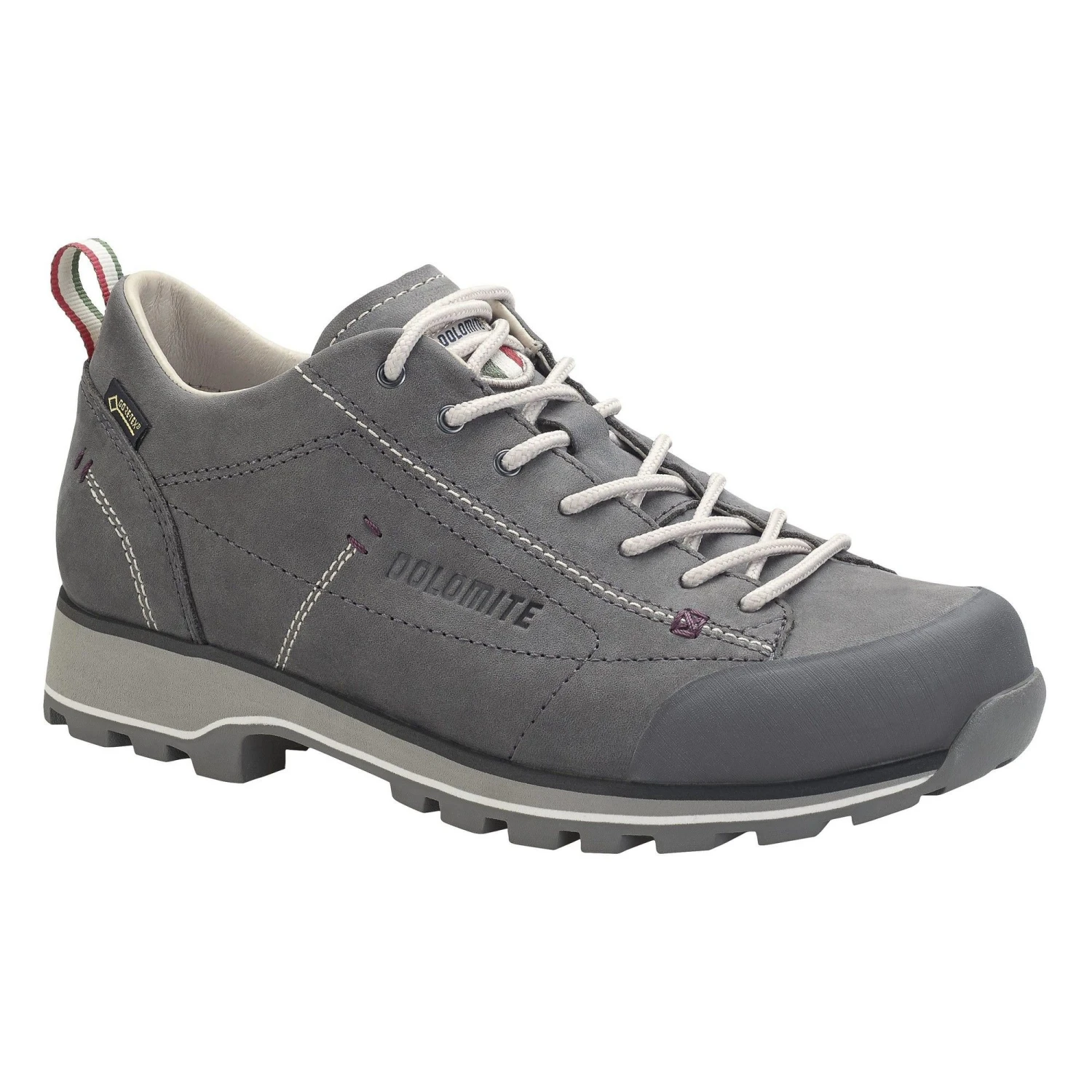 De Dolomite Cinquantaquattro Low FG GTX 268010 vrijetijdsschoenen dames gunmetal grey combineren het comfort van een wandelschoen met een casual design. Deze Dolomite damesschoenen hebben een nubuck bovenwerk, met een waterdicht en ademend Gore-Tex bin