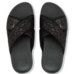 De FitFlop Lulu Glitter Slides dames slippers bieden ondersteuning en verlichten de druk op de voeten. De binnenkant van de banden is gevoerd met textiel voor optimaal comfort. De Microwobbleboard-tussenzool ondersteunt de voeten bij het bewegen en de dikke zool biedt stevige demping en schokabsorptie.