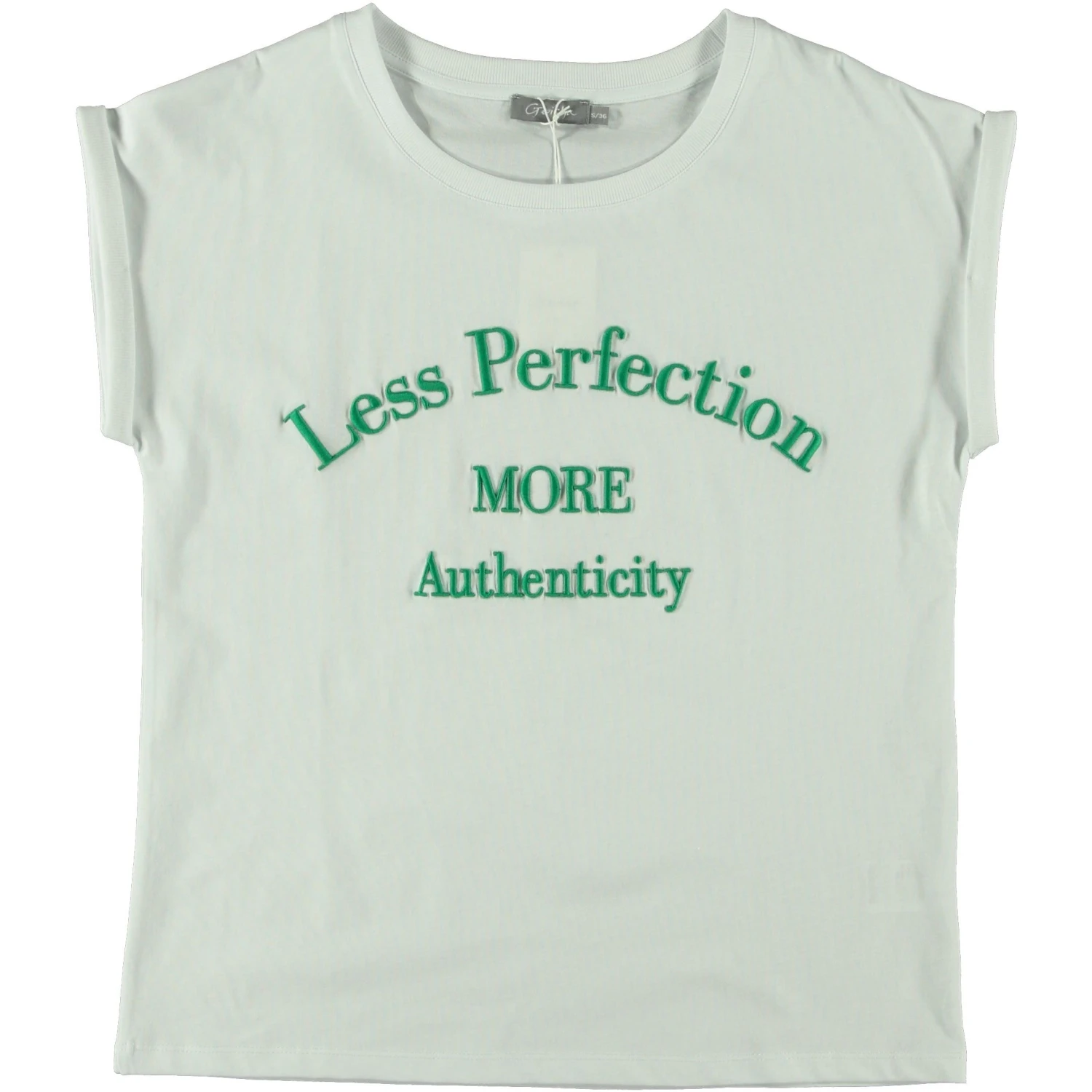 Het Geisha Embroidered shirt voor dames valt op de heupen en heeft omgeslagen mouwtjes.
