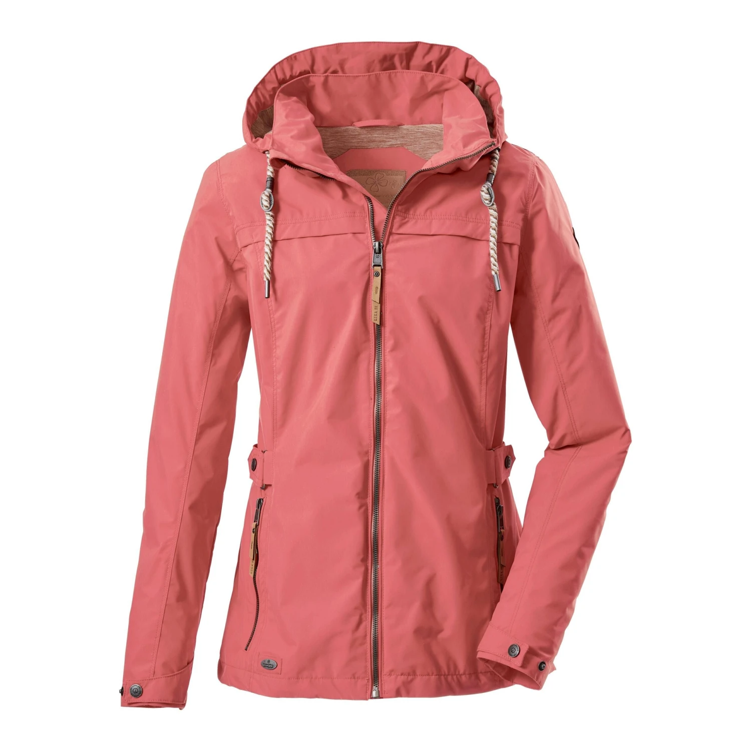 De GIGA DX Jamil zomerjas voor dames heeft een afneembare capuchon. In de taille kan de jas worden versteld.