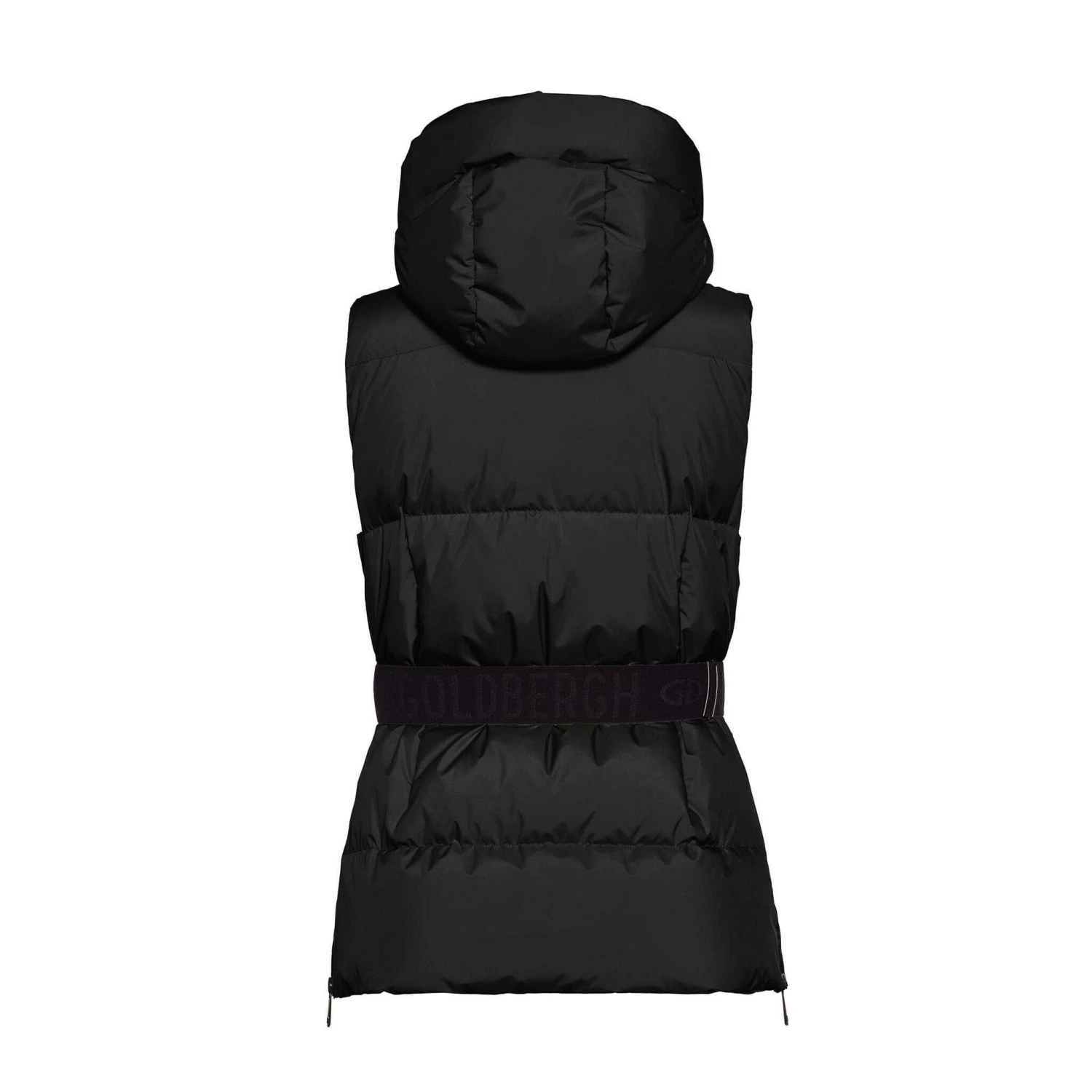 De Goldbergh Mae bodywarmer heeft twee zakken en twee binnenzakken. De gerecyclede voering is afgewerkt met geurwerende materialen. Die riem kan uit de bodywarmer gehaald worden.