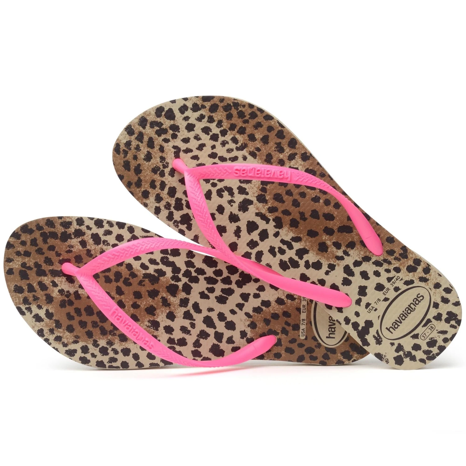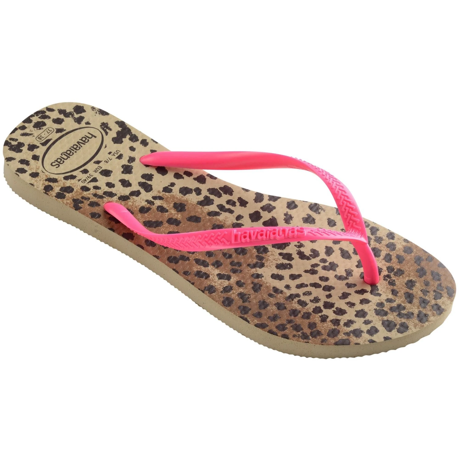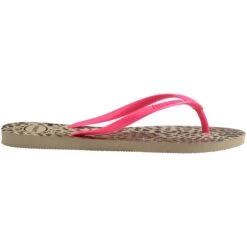 De Havaianas Slim Animals slippers voor kinderen hebben een panterdesign met roze PVC bandjes om lekker op te vallen in de zomer. Deze Havaianas slippers zijn licht, zacht en comfortabel aan de voeten. De slippers zijn water- en hittebestendig.