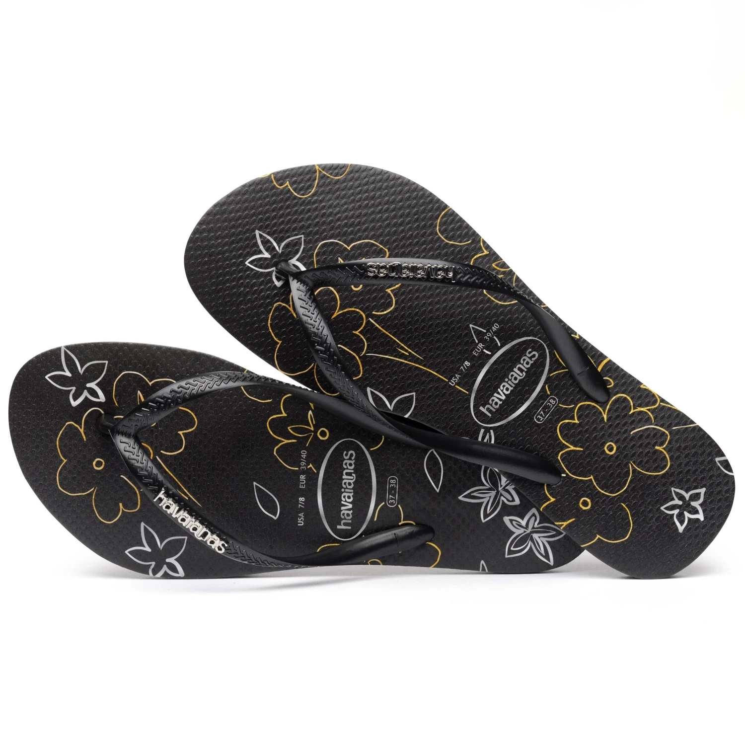 De Havaianas Slim Metallic Print slippers voor dames hebben een vrolijke print. De havaianas slippers zool is gemaakt van rubber en de bandjes van PVC.