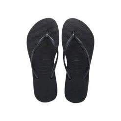 De Havaianas Slim slippers voor dames zijn gebaseerd op het Retro model voor heren. De buitenzool en het bandje van deze Havaianas slippers zijn van rubber.