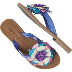 De Lazamani 33.726 slippers voor dames hebben een grote, kleurrijke bloem als blikvanger die gemaakt is van leer. De ademende eigenschappen van de hoogwaardige materialen zorgen voor een optimaal draagcomfort. Daarnaast zijn de sandalen voorzien van een klein hakje.