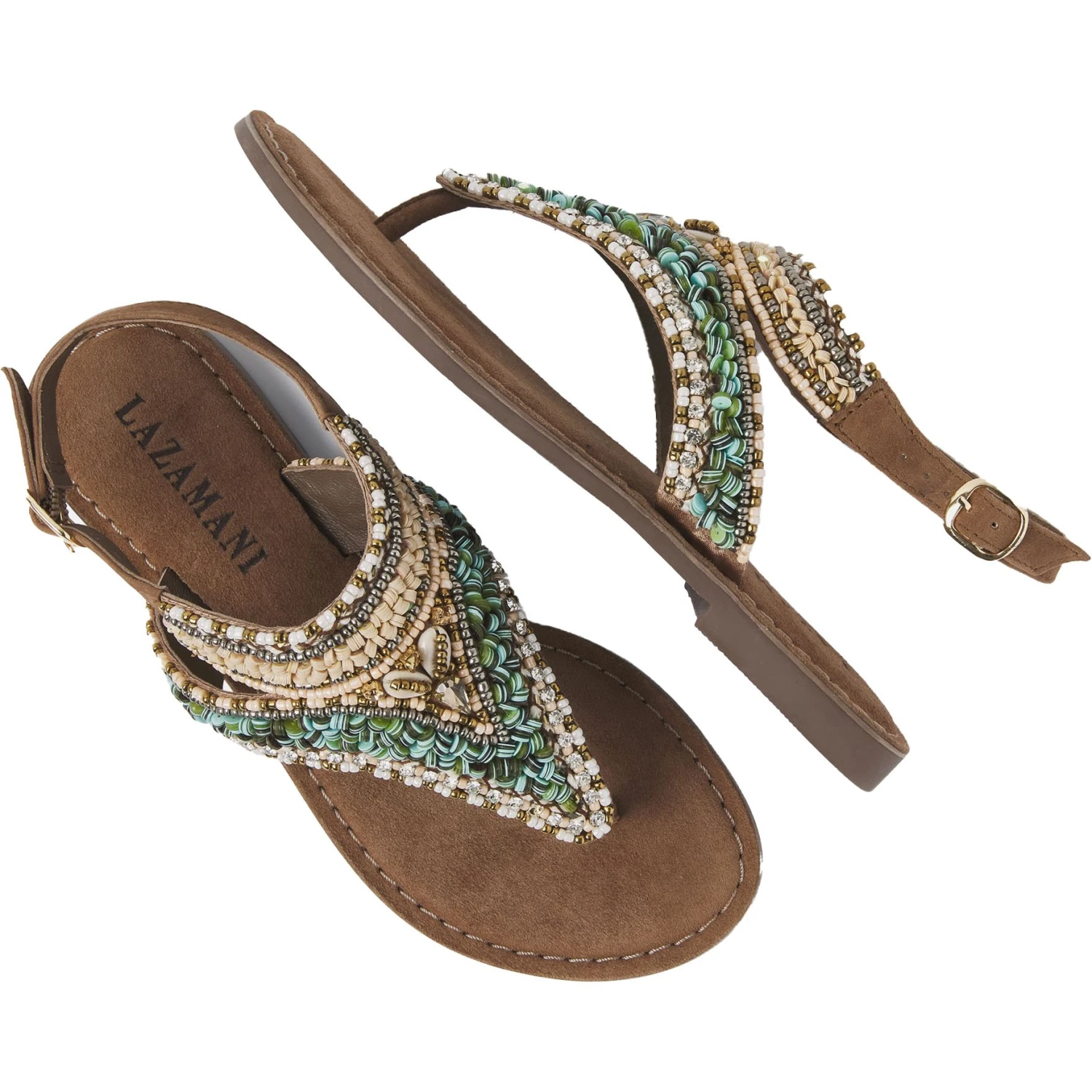 De Lazamani 75.293 sandalen voor dames zijn rijkelijk gedecoreerd met kleurrijke steentjes. Hierdoor hebben de sandalen een zomerse uitstraling. De sandalen zijn eenvoudig verstelbaar met een gespsluiting. Daarnaast zijn de sandalen voorzien van een klein hakje.