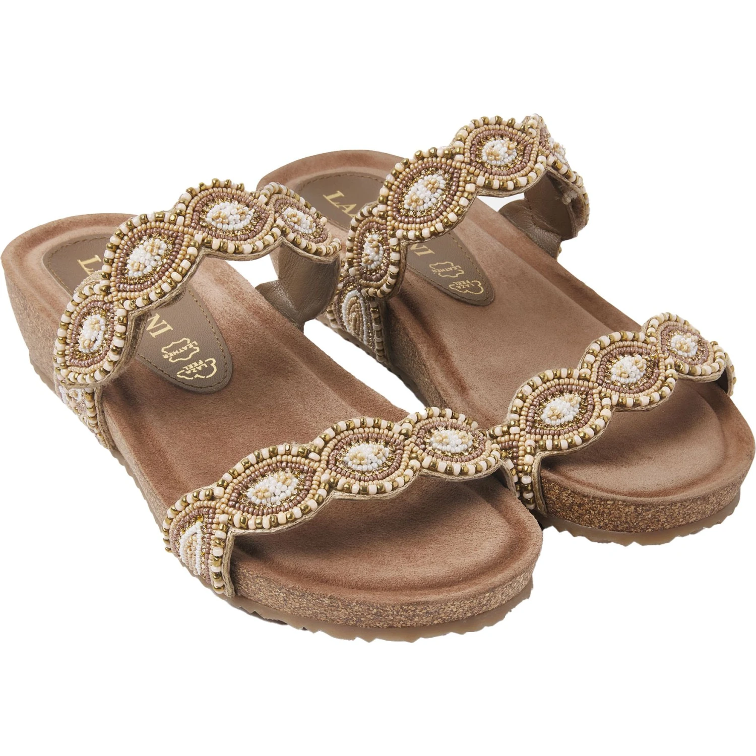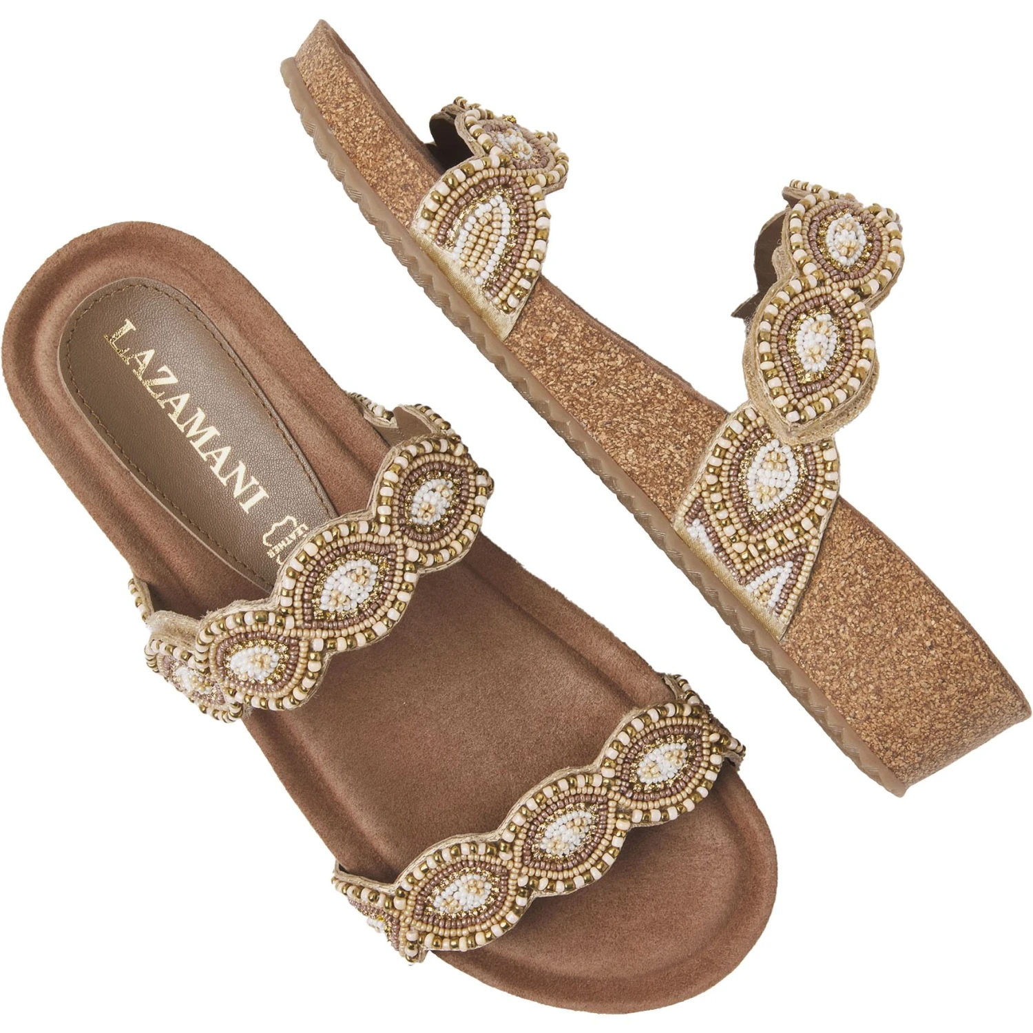De Lazamani 75.366 slippers voor dames hebben twee leren bandjes die rijkelijk gedecoreerd zijn met allerlei kralen en steentjes voor een zomerse uitstraling. Het achterste bandje is makkelijk te verstellen dankzij de klittenbandsluiting. Daarnaast is het voetbed gevoerd en bekleed met zacht suède voor een maximaal comfort.