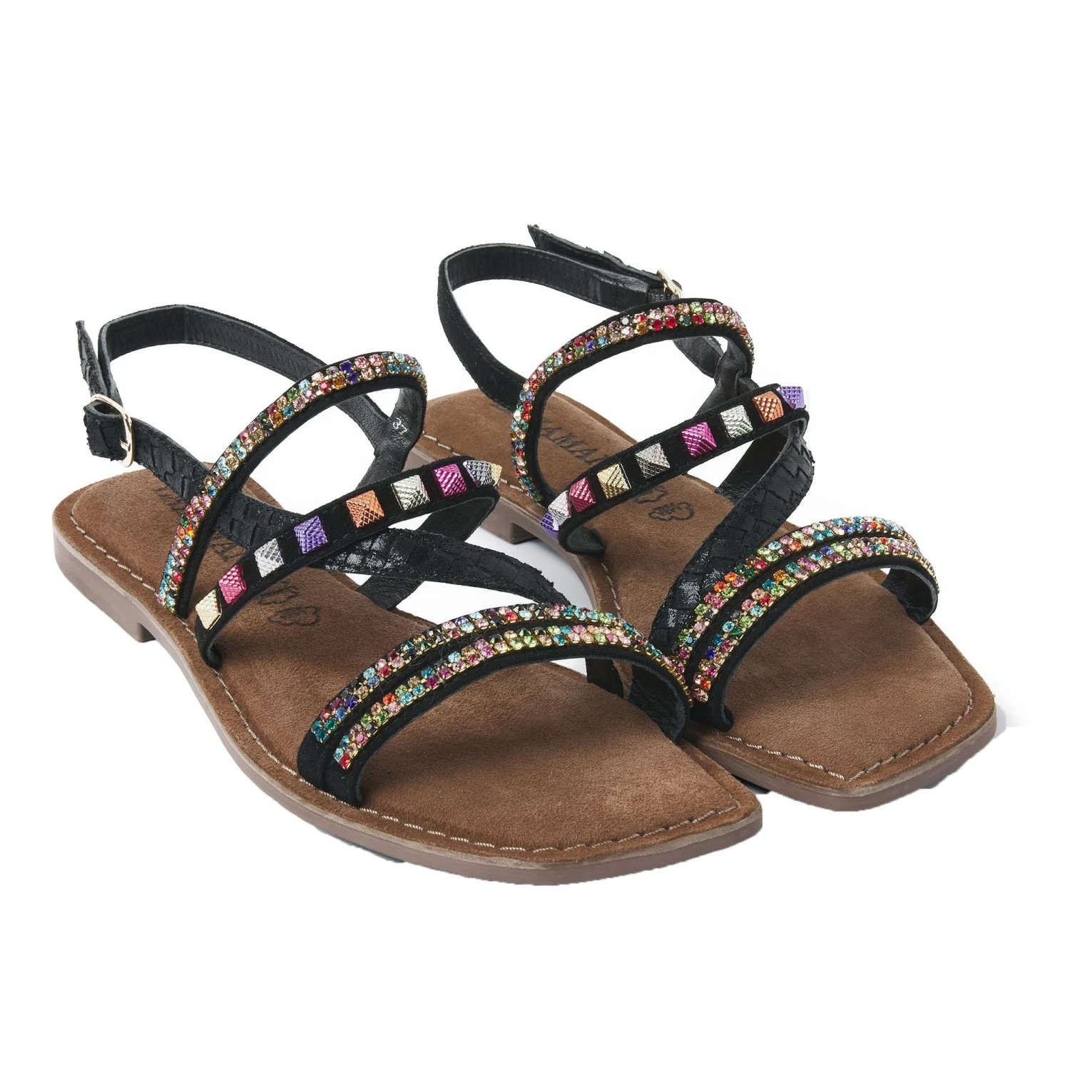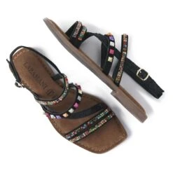 De Lazamani 75.405 sandalen voor dames is uitgevoerd met smalle leren bandjes, elk gedecoreerd met verschillende steentjes. De slingback kan met de gespsluiting eenvoudig naar uw voet worden aangepast. Het voetbed is zacht gevoerd en bekleed met suède voor het ultieme comfort. Daarnaast zorgt de rubberen buitenzool voor stabiliteit en grip.