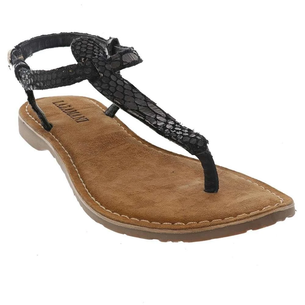 De Lazamani 75.611 sandalen voor dames zijn simpele maar stijlvolle sandalen die u met iedere outfit kunt combineren. Deze Lazamani sandalen hebben een zwarte slangenprint. Het voetbed is van suède en de bandjes zijn zowel aan de buitenzijde als de binnenkant van leer.