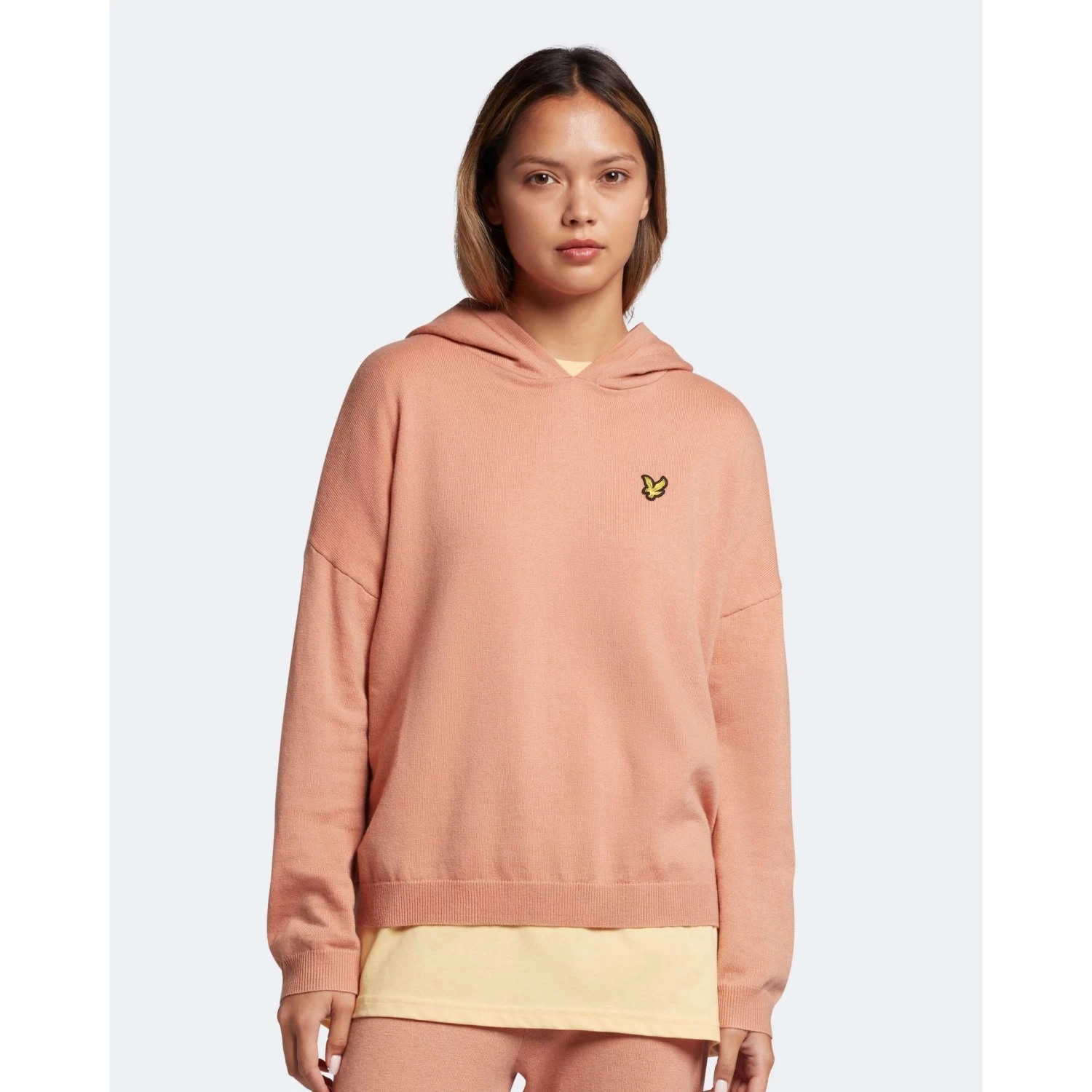 De Lyle & Scott Knitted hoodie voor dames in de kleur dusty peach is een fijne trui om comfortabel in te loungen. Deze trui is afgewerkt met het Lyle & Scott logo op de linkerborst. Combineer deze hoodie samen met de dusty peach joggingbroek om de look helemaal af te maken.