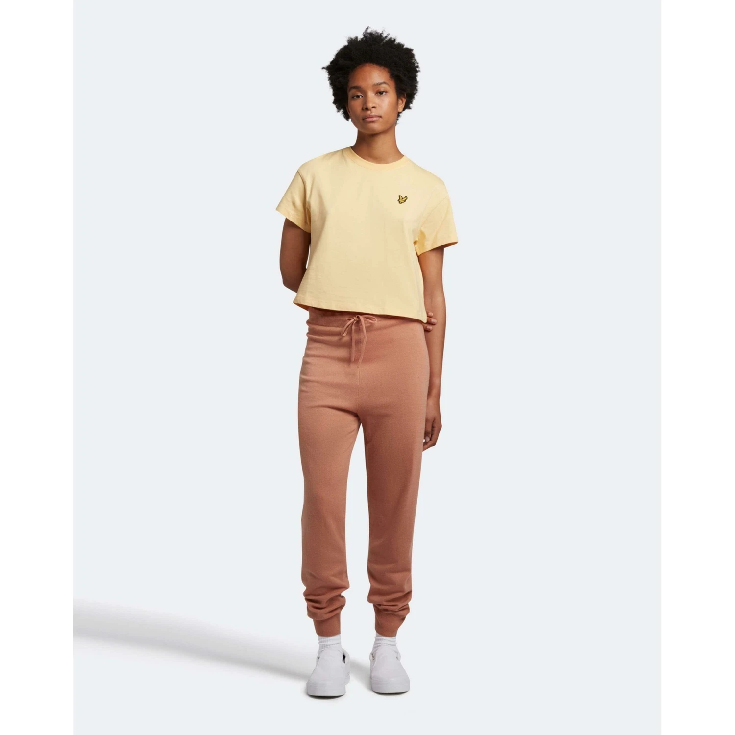 De Lyle & Scott Knitted joggingbroek voor dames in de kleur dusty peach heeft een slim fit pasvorm. Deze Lyle & Scott joggingbroek is afgewerkt met een elastische tailleband met trekkoord. Het Lyle & Scott logo staat op de achterzijde van de joggingbroek gepositioneerd. Combineer deze joggingbroek met de dusty peach hoodie om de hele look af te maken.