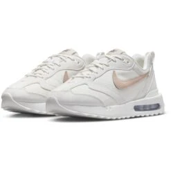 De Nike Air Max Dawn vrijetijdsschoenen voor dames hebben een modern design. Door de zachte kleuren passen deze schoenen onder elke outfit. De buitenzool is voorzien van een zaagtandrand voor meer grip en de middenzool is voorzien van foam voor een dempend gevoel. Het treklipje op de hiel maakt het makkelijker de schoenen aan en uit te trekken.