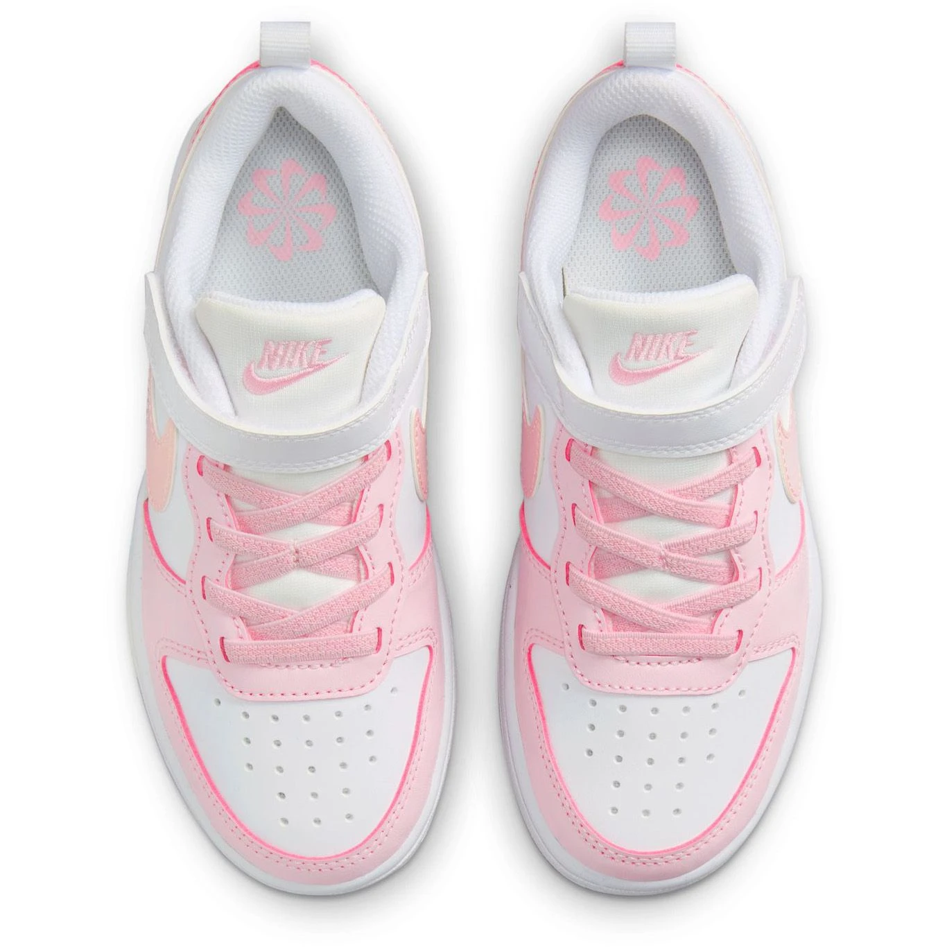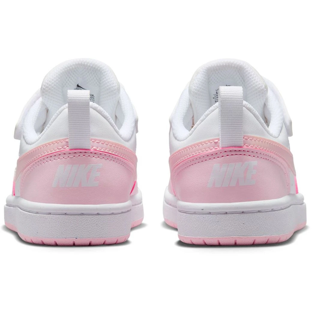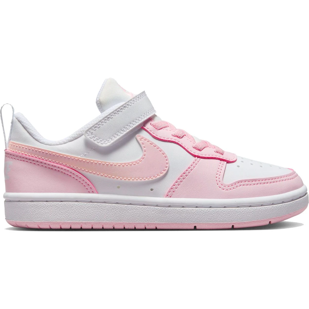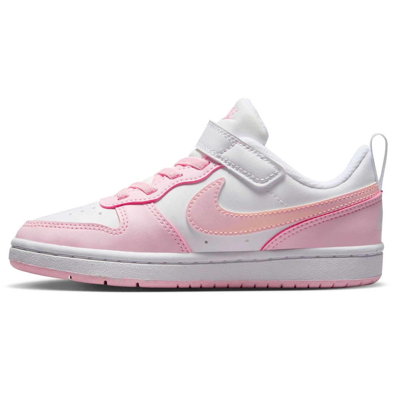 De Nike Court Borough Low Recraft vrijetijdsschoenen voor kinderen hebben een stevig bovenwerk met een klassiek design. De schoenen hebben een vernieuwde neus en middenvoet voor meer steun en extra ruimte. De schoenen zijn voorzien van elastische veters.