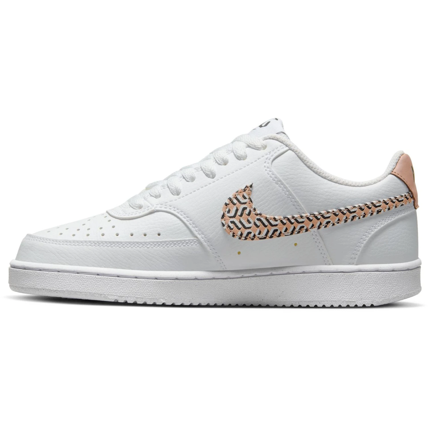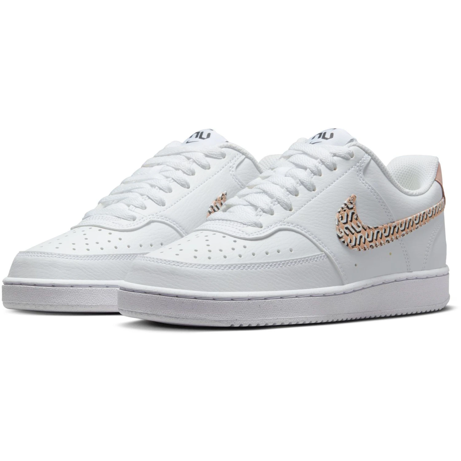 De Nike Court Vision Nature X United vrijetijdsschoenen voor dames hebben een strak design en het Nike logo heeft een opvallend design. De schoenen hebben een imitatieleren bovenwerk en de buitenzool is van rubber. Met deze schoenen heeft u goede grip en de schoenen zitten de hele dag comfortabel.