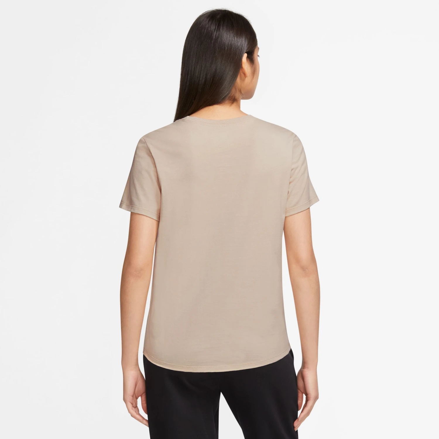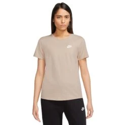 Het Nike Sportswear Club Essentials shirt voor dames heeft een aansluitende pasvorm en deze voelt aangenaam zacht aan op de huid. Dit shirt heeft een lichte ronde zoom en een ronde halslijn.