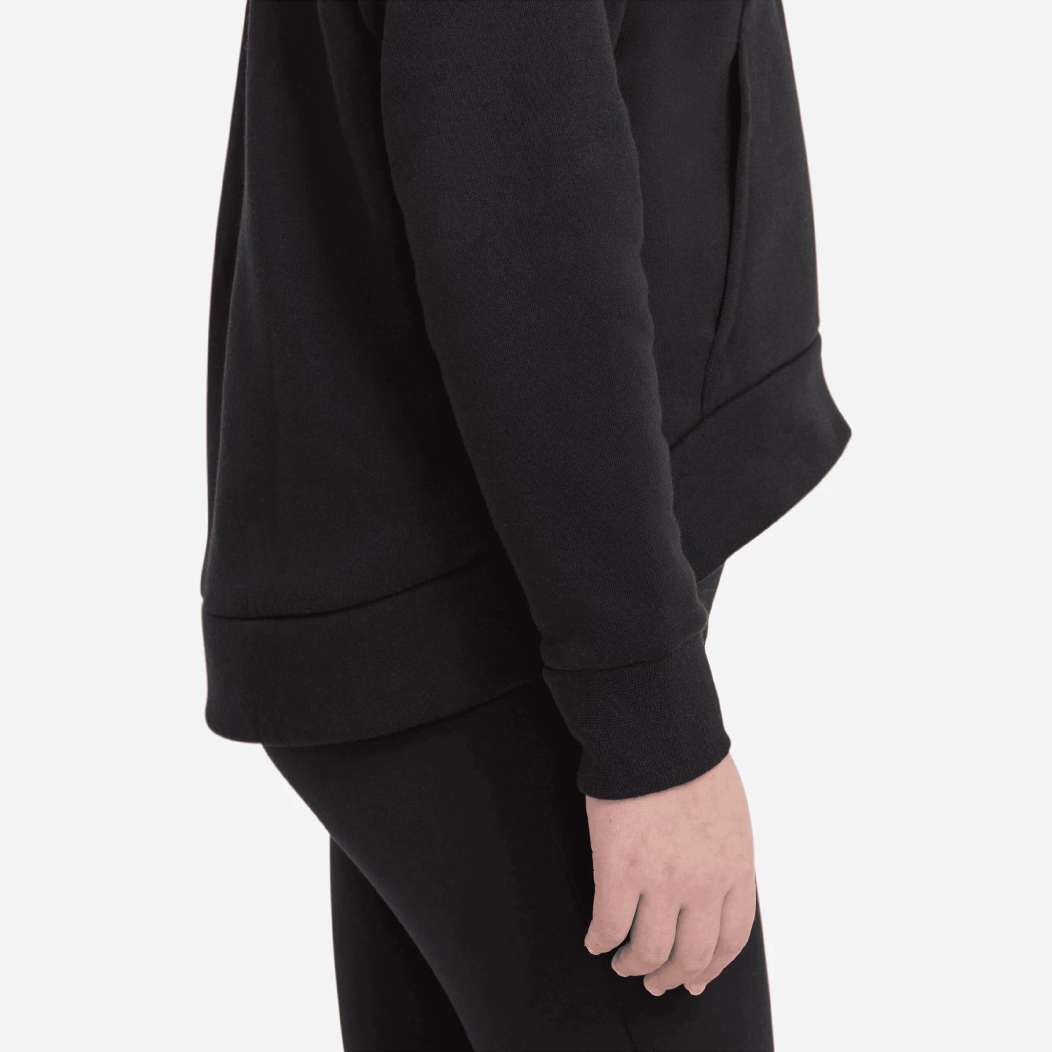 Dit Sportswear Club vest voor kinderen heeft een standaard pasvorm en is voorzien van een lange ritssluiting en capuchon. Het vest heeft een verlengde achterkant wat extra bedekking biedt. De geribde boorden zorgen dat het vest van Nike goed op zijn plek blijft zitten tijdens het buitenspelen, relaxen en alles daar tussenin.