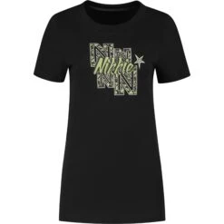 Het NIKKIE Green Flower shirt voor dames is gemaakt van 100% katoen en heeft een ronde halslijn. Dit NIKKIE shirt heeft een soepel regular pasvorm.
