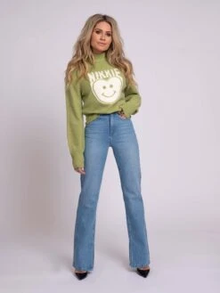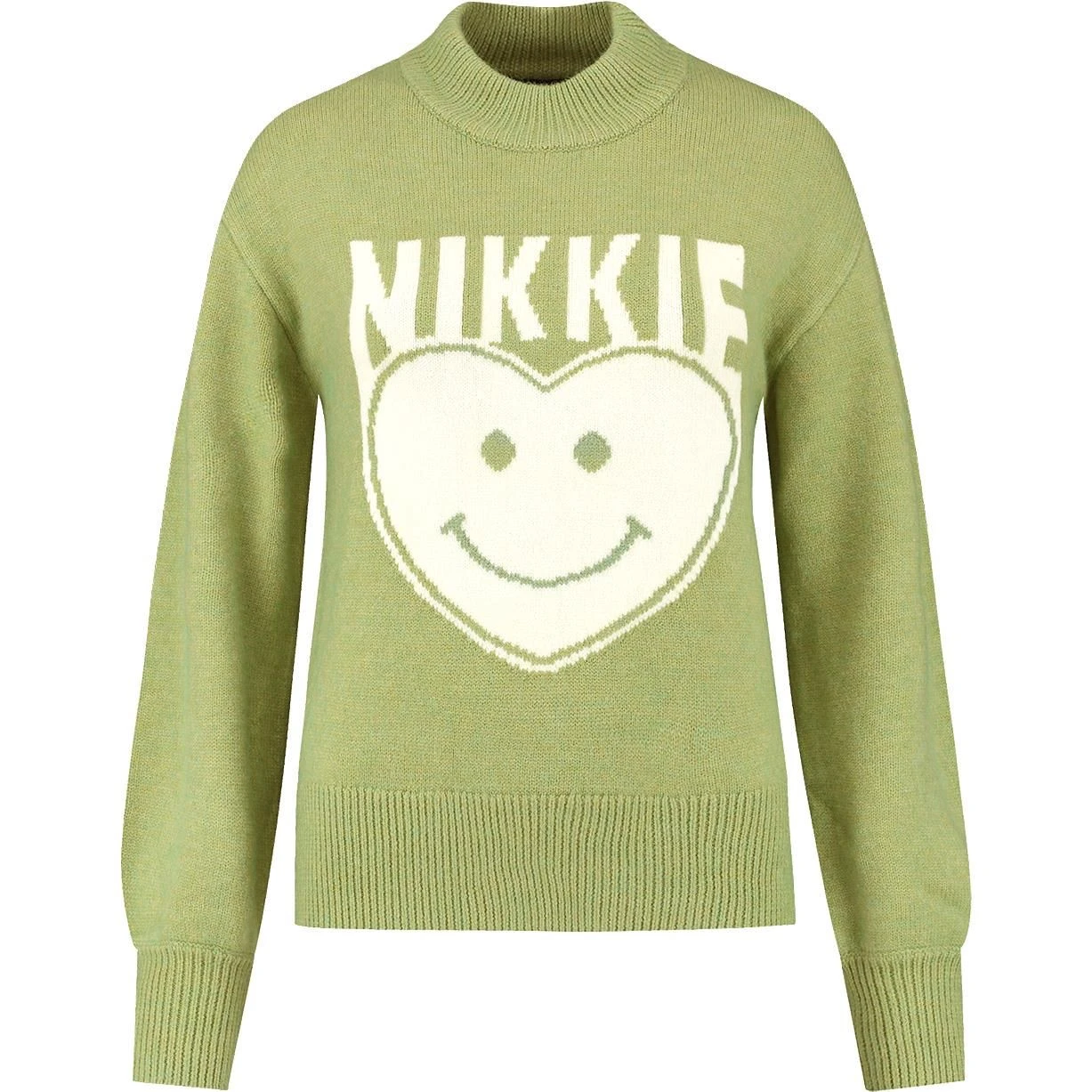 De NIKKIE Tara Pull sweater voor dames is gemaakt van 64% acryl, 26% polyester en 10% nylon. Deze NIKKIE sweater zit comfortabel en heeft een losse pasvorm. Het NIKKIE hart logo staat op de voorzijde van de groene sweater.