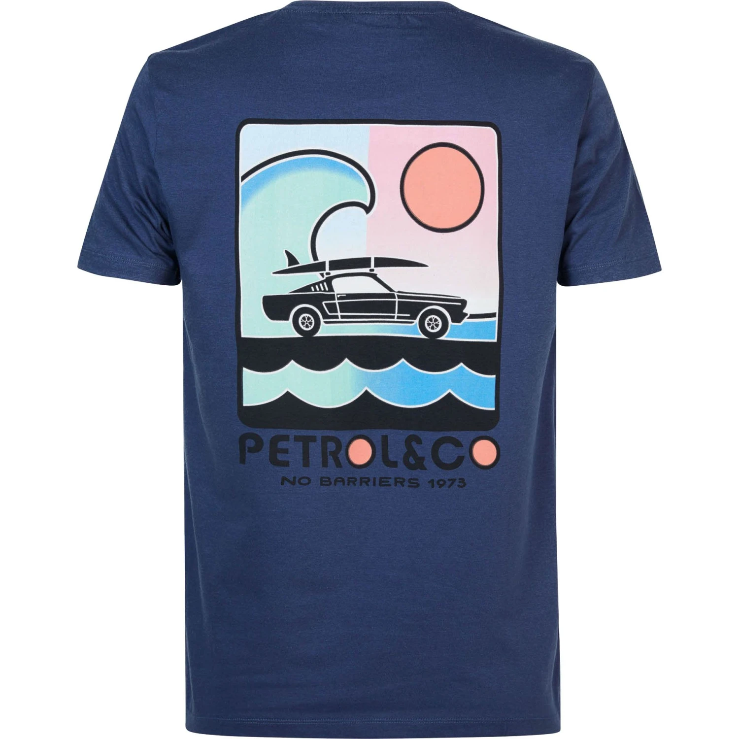 Het Short sleeve shirt in de kleur stone blue van Petrol Industries is van 100% katoen. Het shirt heeft een klein logo op de borst en een groot artwork op de rug.