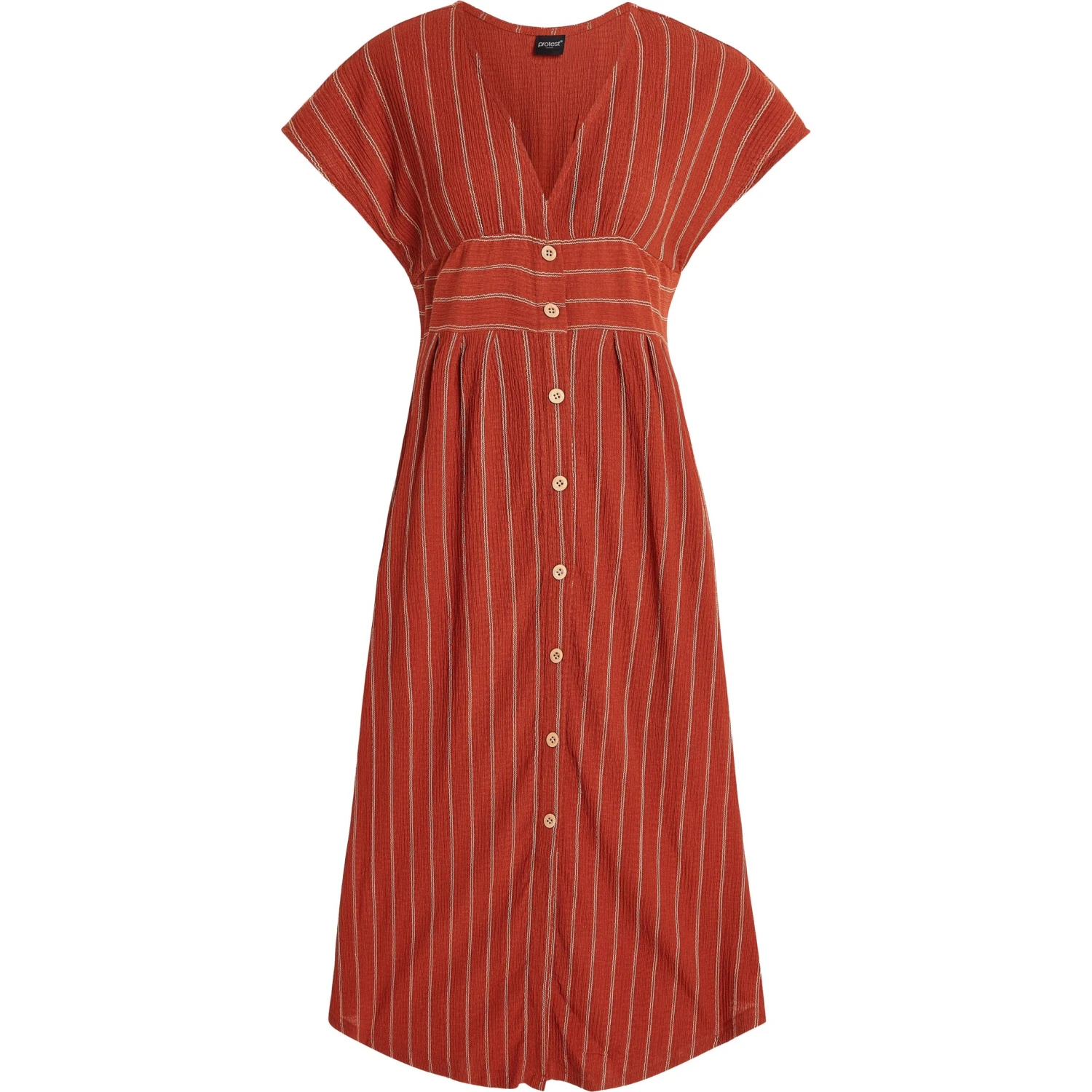 De Protest Kombula jurk voor dames valt los langs het lichaam. Het model valt tot net onder knie en de mouwen zijn 1/8 lang. Een perfecte jurk voor in de zomermaanden.