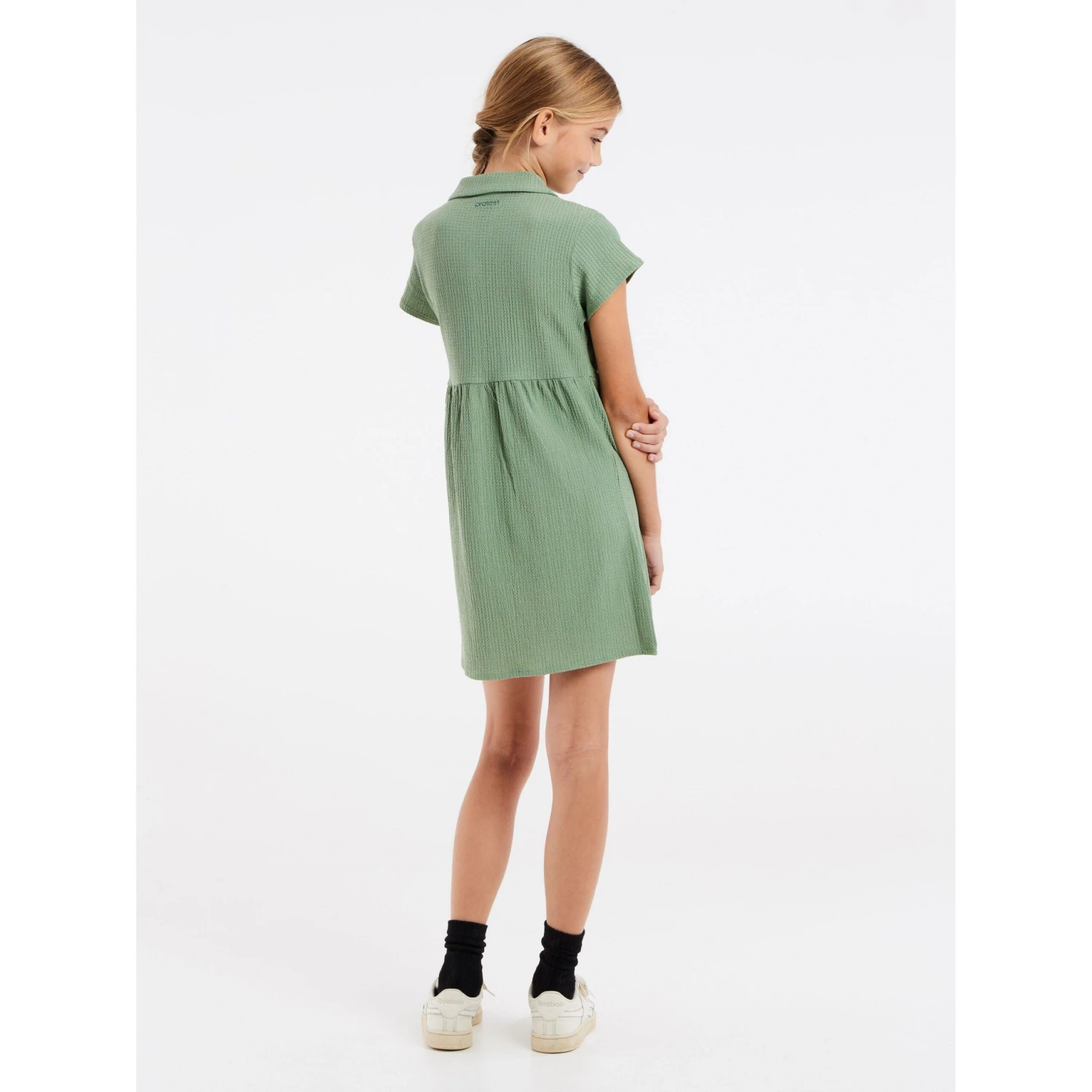 De Protest Vivian is een leuke meisjesjurk met een mooie stoftextuur. Het materiaal is licht elastisch en draagt heel erg comfortabel.