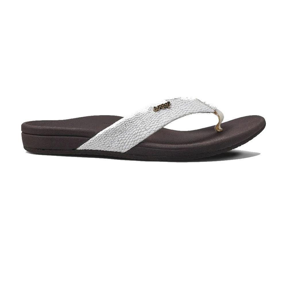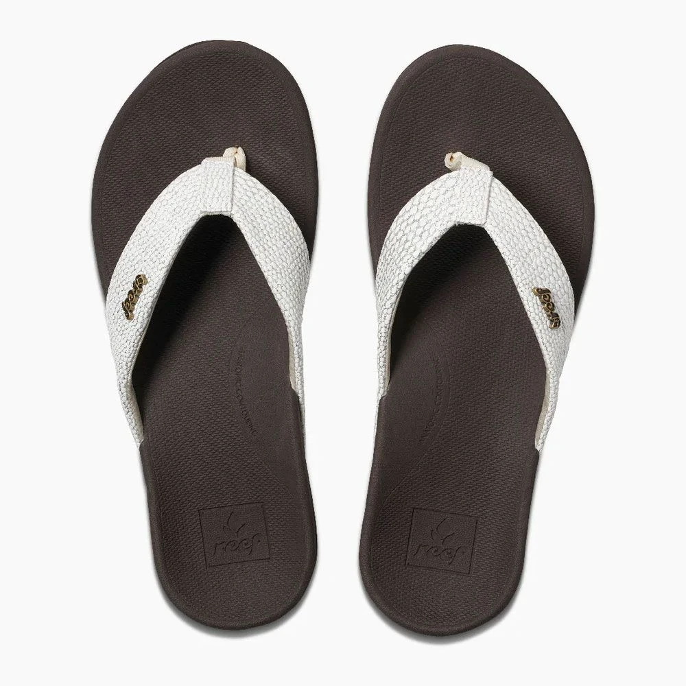 De Reef Ortho Spring slippers voor dames hebben een orthopedisch voetbed en voorzien u van optimaal comfort. Deze Reef slippers hebben een neutrale uitstraling, waardoor deze ideaal zijn voor het afmaken van een outfit. De slippers zijn uitgerust met bandjes van vegan leer.