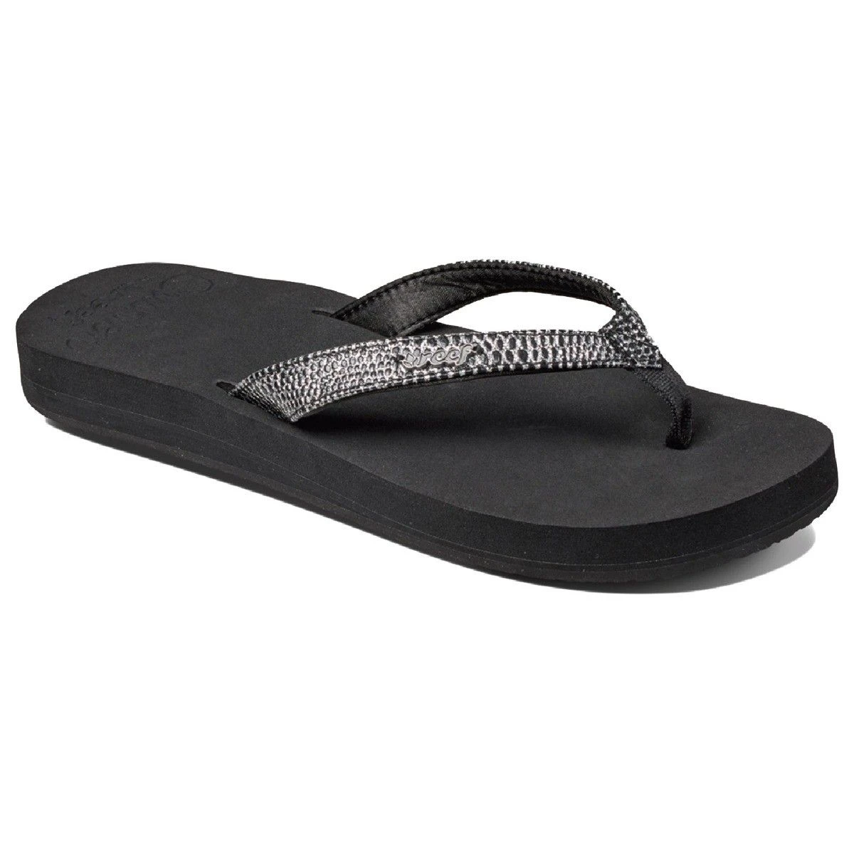 De Reef Star Cushion Sassy dames slippers zijn uitgerust met een anatomische steunzool om optimaal comfort te bieden. De stijlvolle bandjes zijn ontworpen met een stoffig glitter en een reptielachtig patroon. De buitenzool is gemaakt van een soort spons voor extra flexibiliteit.