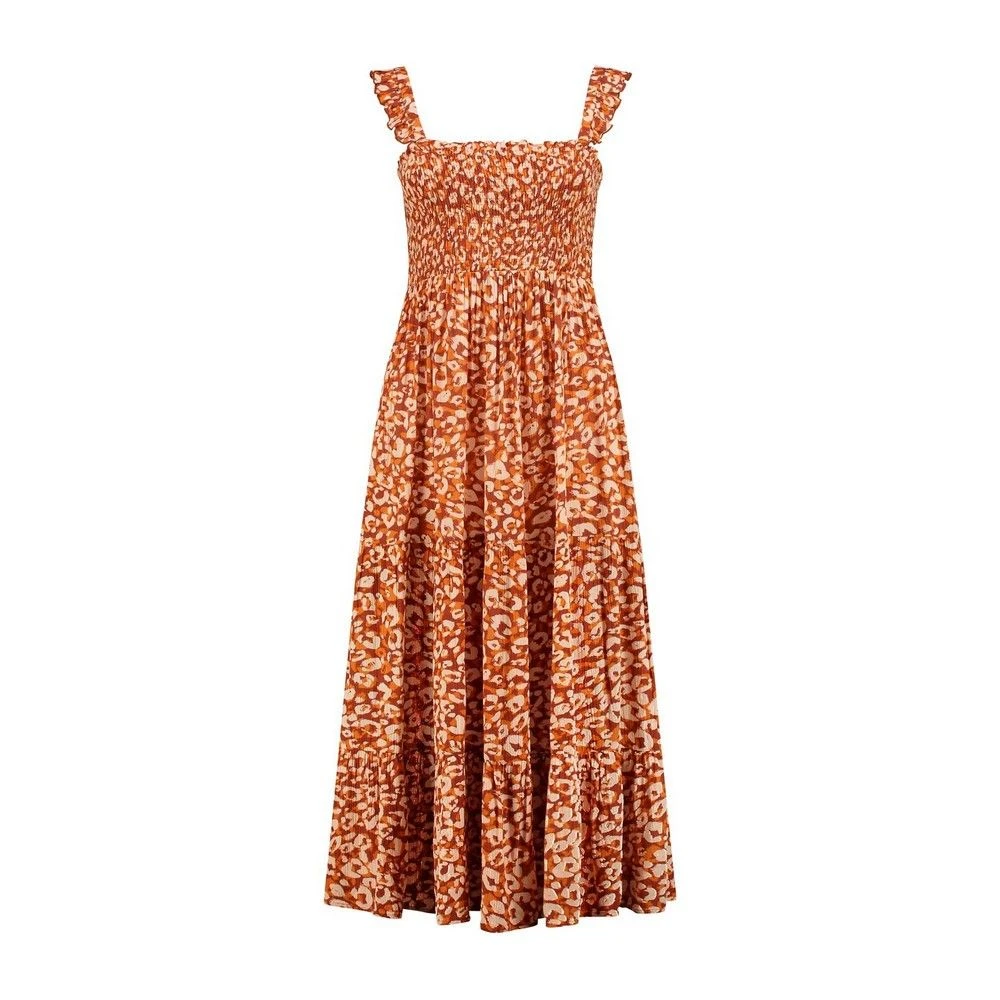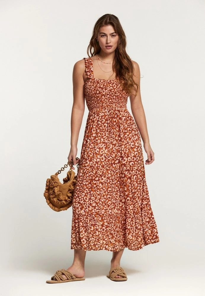 Deze Shiwi Seychelles jurk voor dames komt in de kleur lush leopard frozen choco brown. Deze jurk is helemaal ideaal voor de zomer. Het luchtige materiaal in luipaard print geeft het een echte trendy uitstraling. De jurk is voorzien van een gesmokt lijfje en elastische bandjes voor een comfortabele pasvorm.