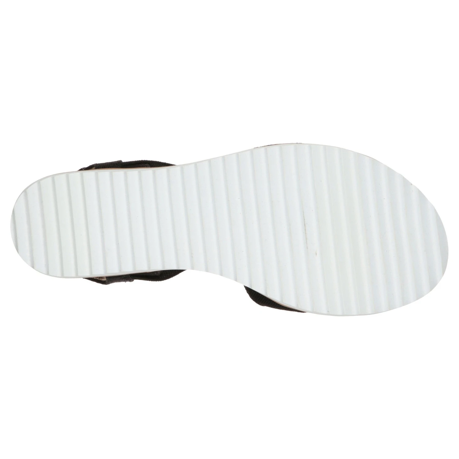 De Skechers BOBS Desert Kiss – Secret Picnic sandalen voor dames zitten comfortabel dankzij het Memory Foam voetbed. De buitenzool is van rubber en bieden goede grip. Deze sandalen hebben een linnen en stretchstof uitvoering met een panter print aan de binnenzijde. De hak is 3,2 centimeter hoog en de Skechers sandalen hebben verstelbare klittenbandsluiting.