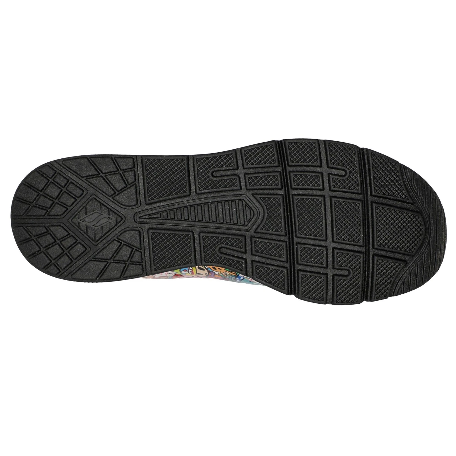 De Skechers Tokidoki Uno 2 vrijetijdsschoenen voor dames hebben een speels design die lekker opvallend is. Deze schoenen bieden comfort en demping aan de voeten. De tussenzool heeft een zichtbare Skech Air unit dat schokabsorberend is.