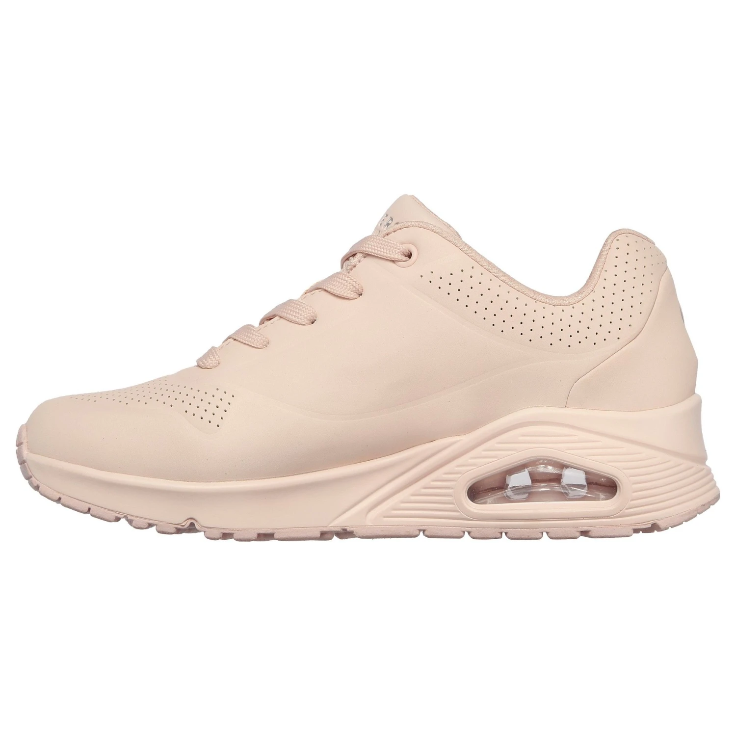 De Skechers Uno – Frosty Kicks vrijetijdsschoenen voor dames hebben een Skech-Air tussenzool die duidelijk zichtbaar is. Hierdoor bieden de schoenen meer demping bij elke stap. De binnenzool is gemaakt met Air Cooled Memory Foam dat voor meer comfort en zachtheid zorgt. De schoenen zijn flexibel en de buitenzool heeft goede grip. Met de vetersluiting kunt u de schoenen goed laten aansluiten op uw voeten.