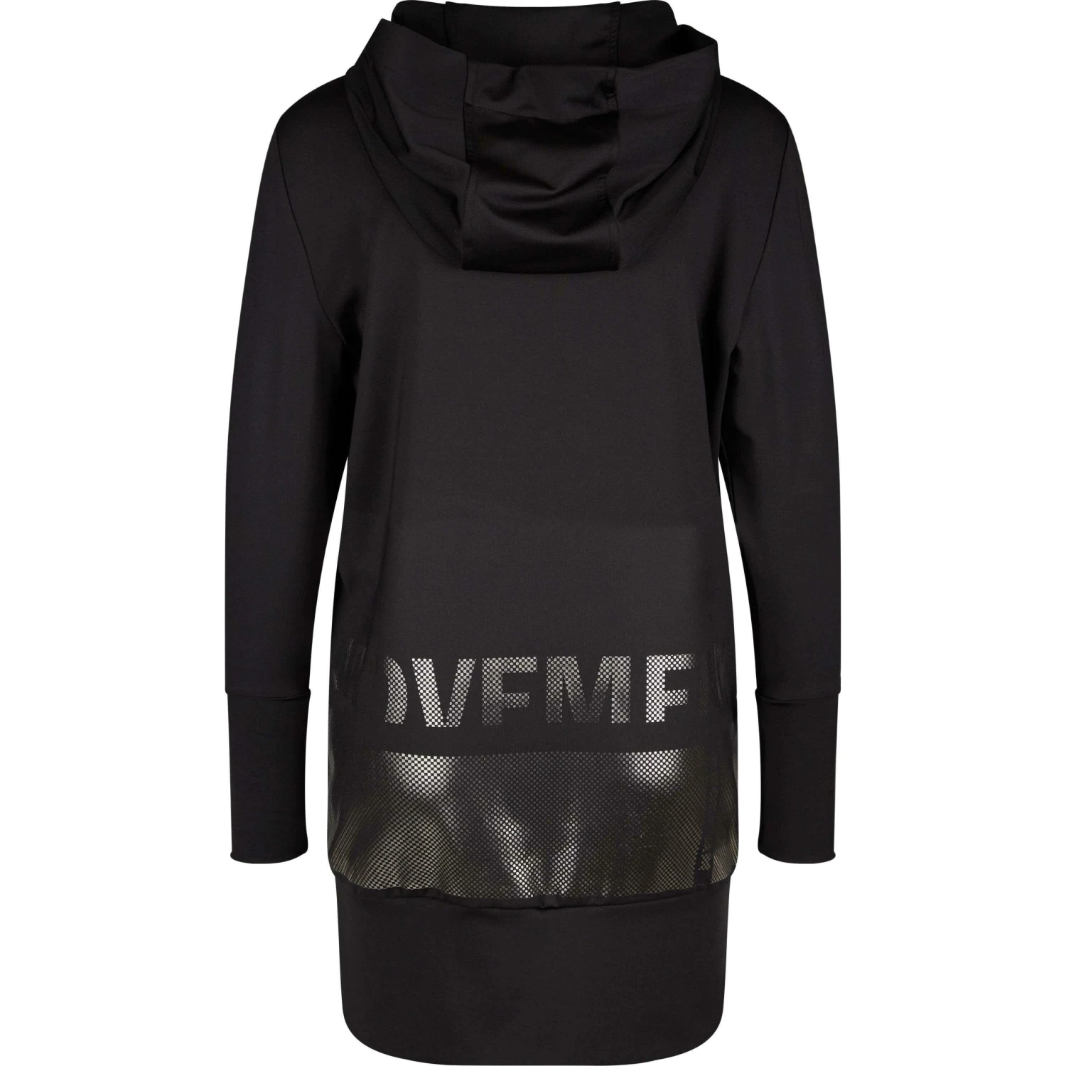 Dit Sportalm Margie vest voor dames is extra lang en heeft een grote capuchon met trekkoord. Op de achterkant van het Margie vest staan strepen en een belettering in metallic folieprint. Aan de voorzijde van het Sportalm vest zit een tweewegritssluiting. Ook zitten er zakken en twee extra ritsen aan de voorzijde.