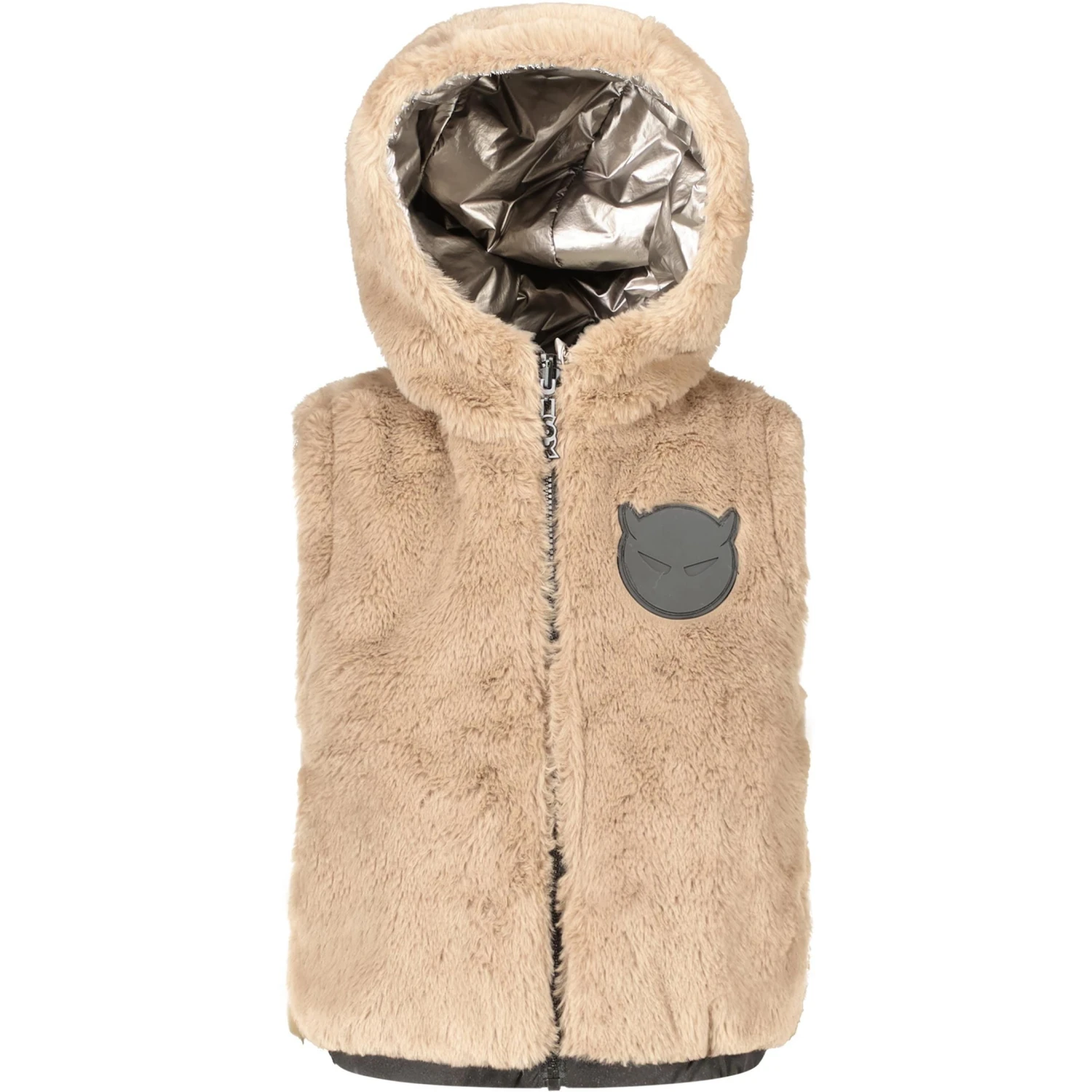 De SuperRebel Monkey Reversible bodywarmer kan op twee manieren gedragen worden. De ene zijde is lekker zacht fleece, de andere zijde heeft een opvallende metallic kleur.