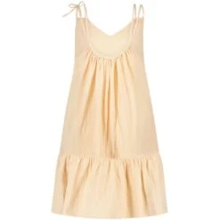 De beige Spaghetti strandjurk van Ten Cate Beach is een ruim vallende A-lijn jurk van 100% katoen. Perfect om te dragen naar het strand of zwembad.